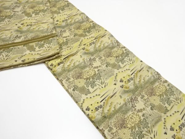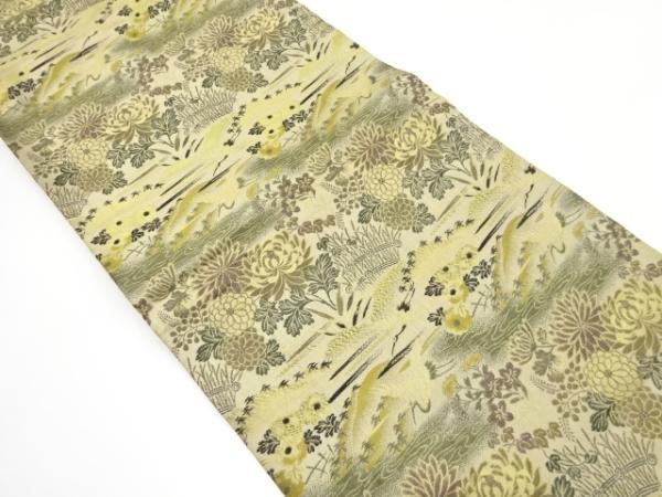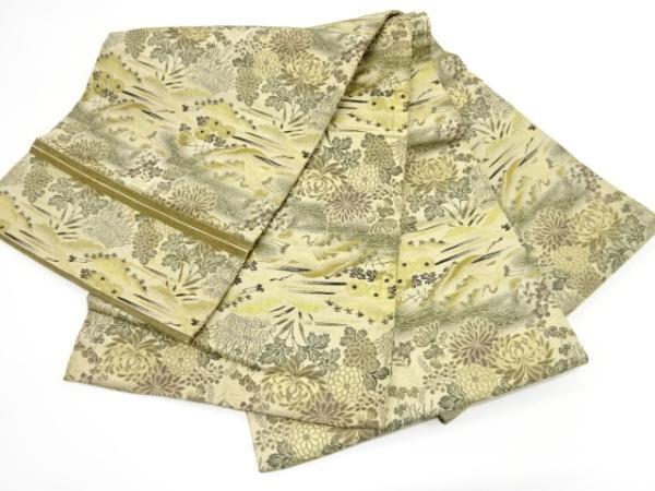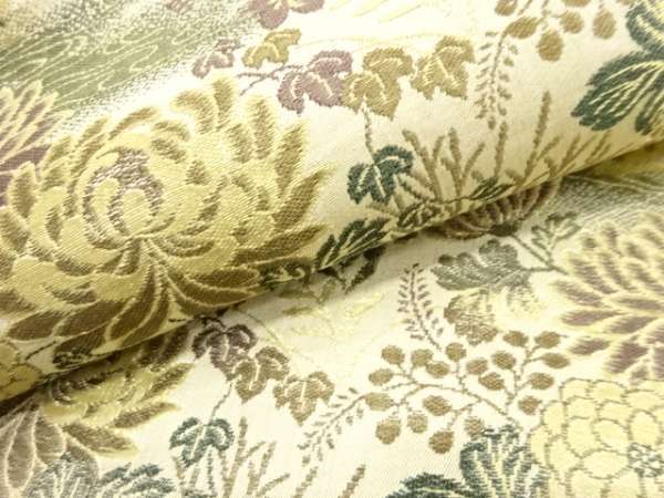 ys7343458; 鶴に菊・草花模様織り出し丸帯(材料)【アンティーク】【着】