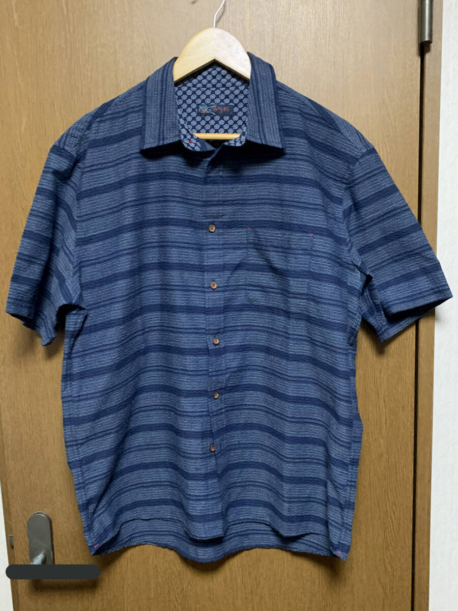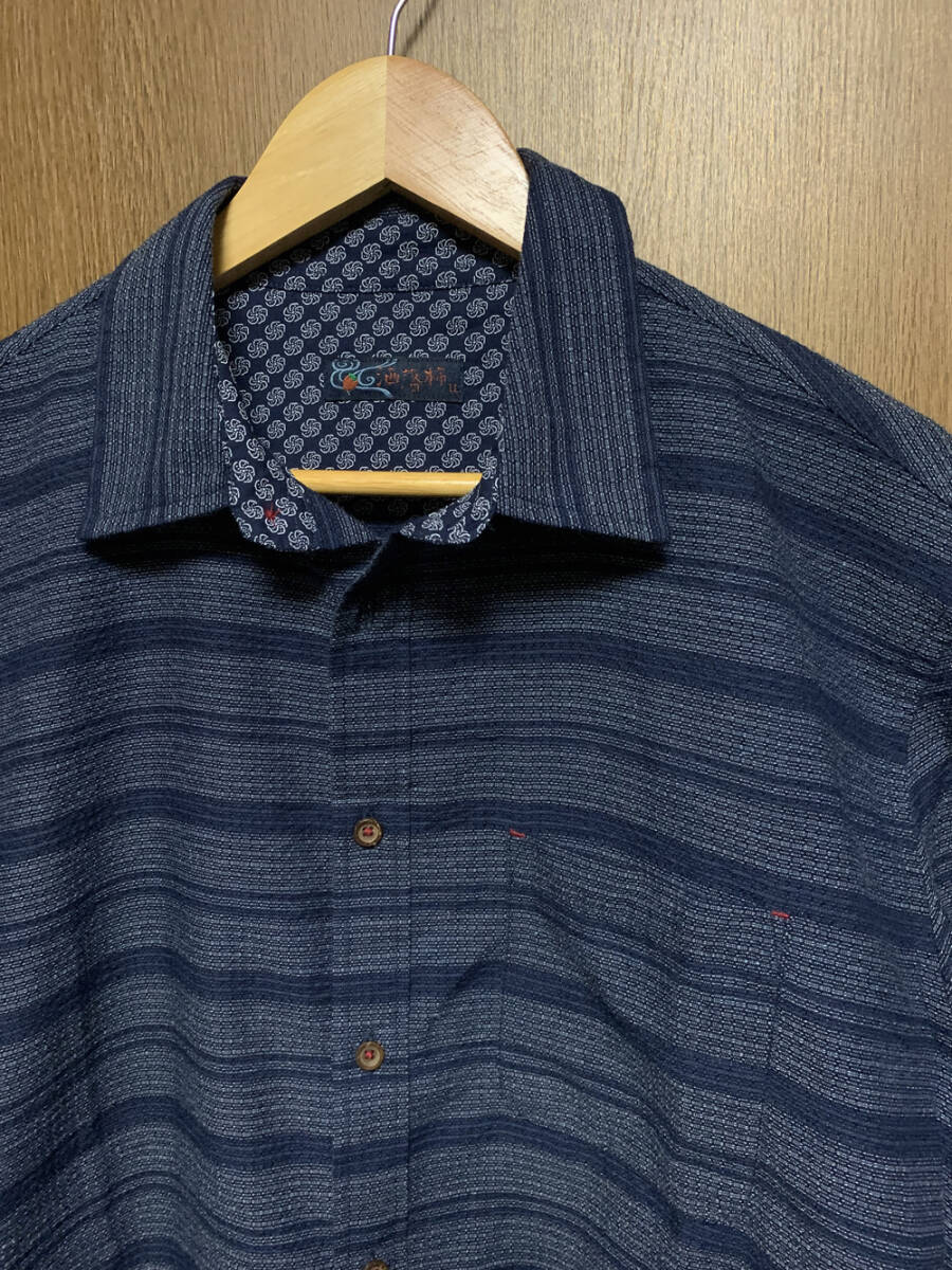 LL【洒落柿|半袖シャツ】しゃれがき ネイビー ボーダー柄