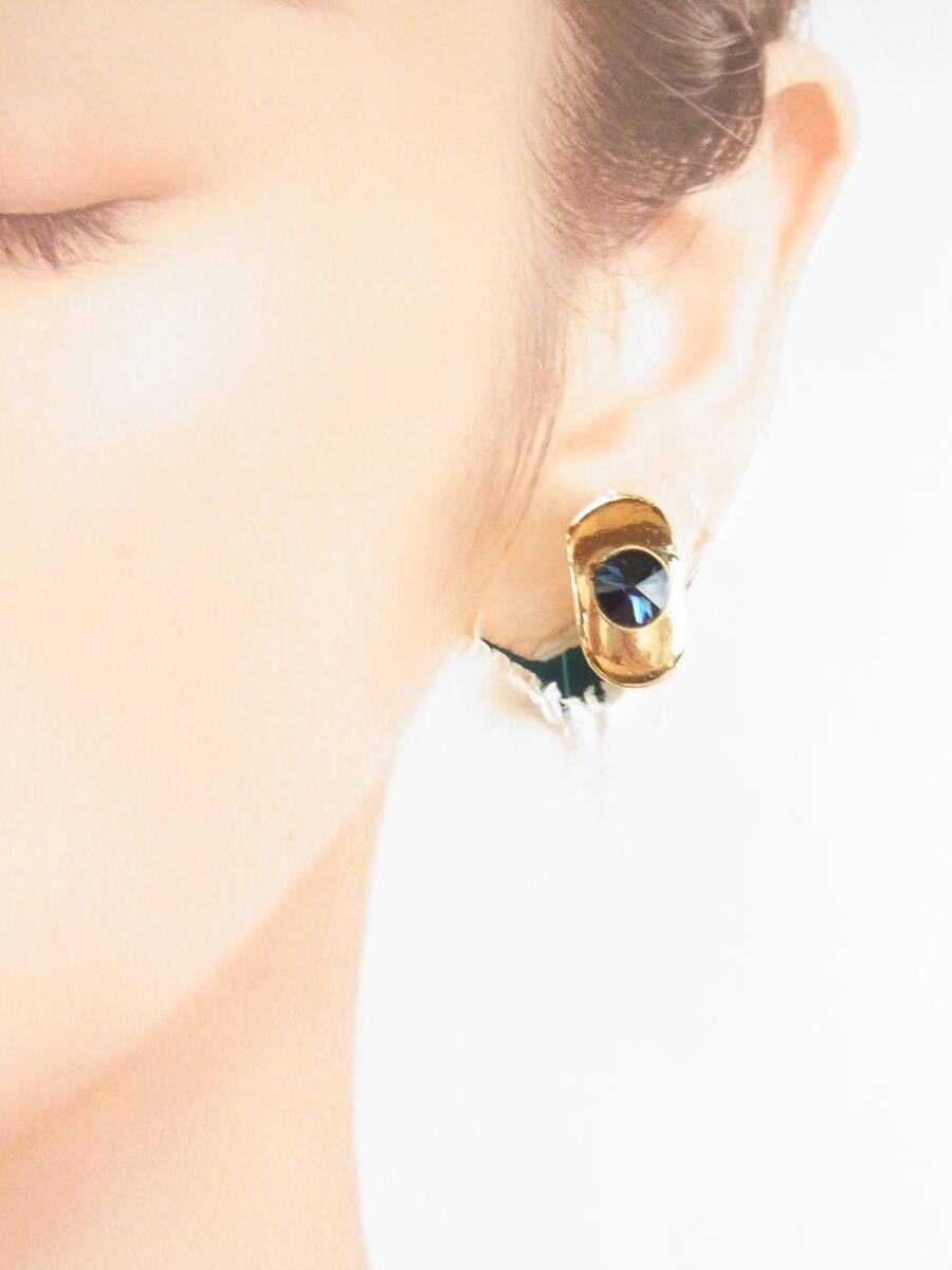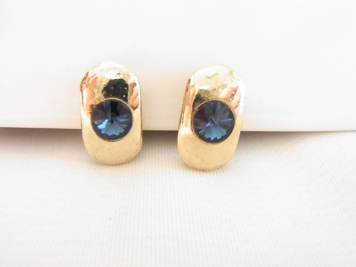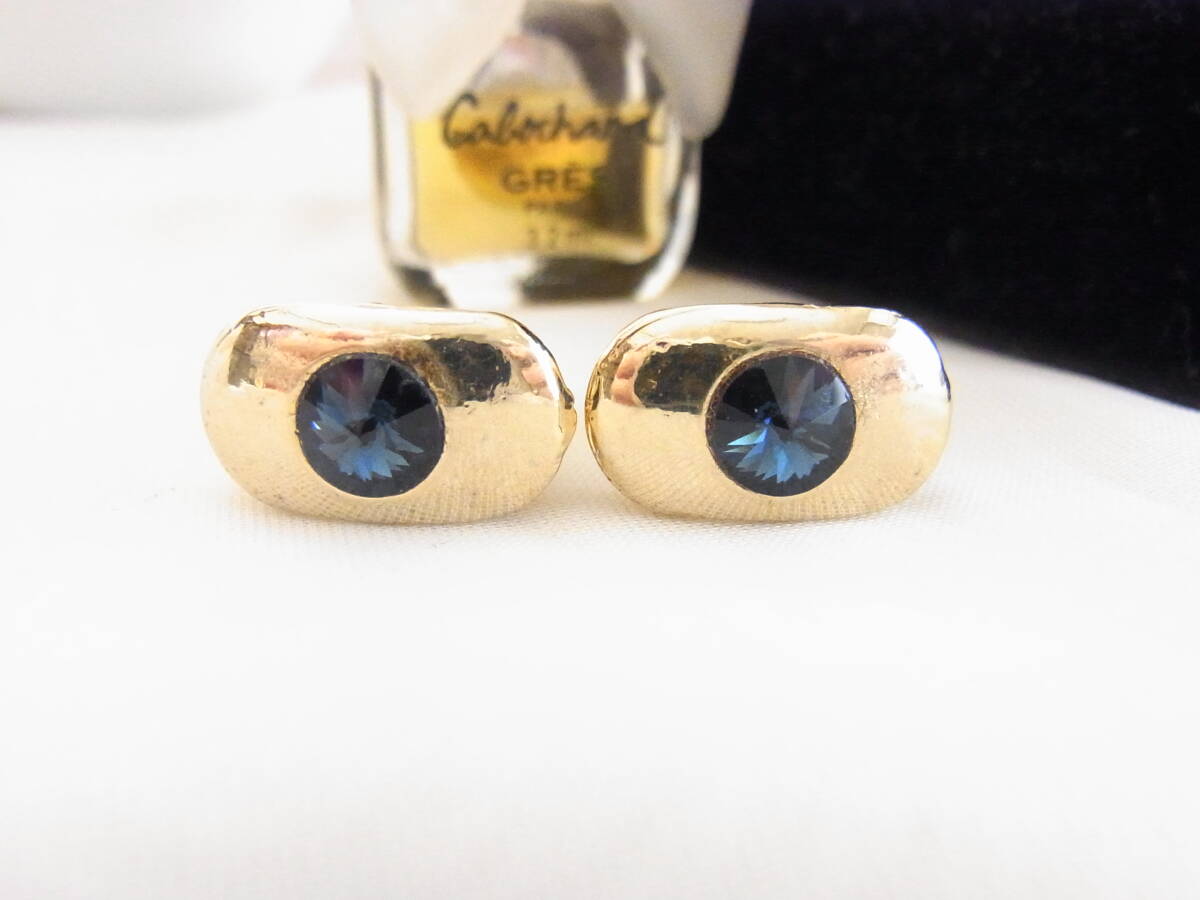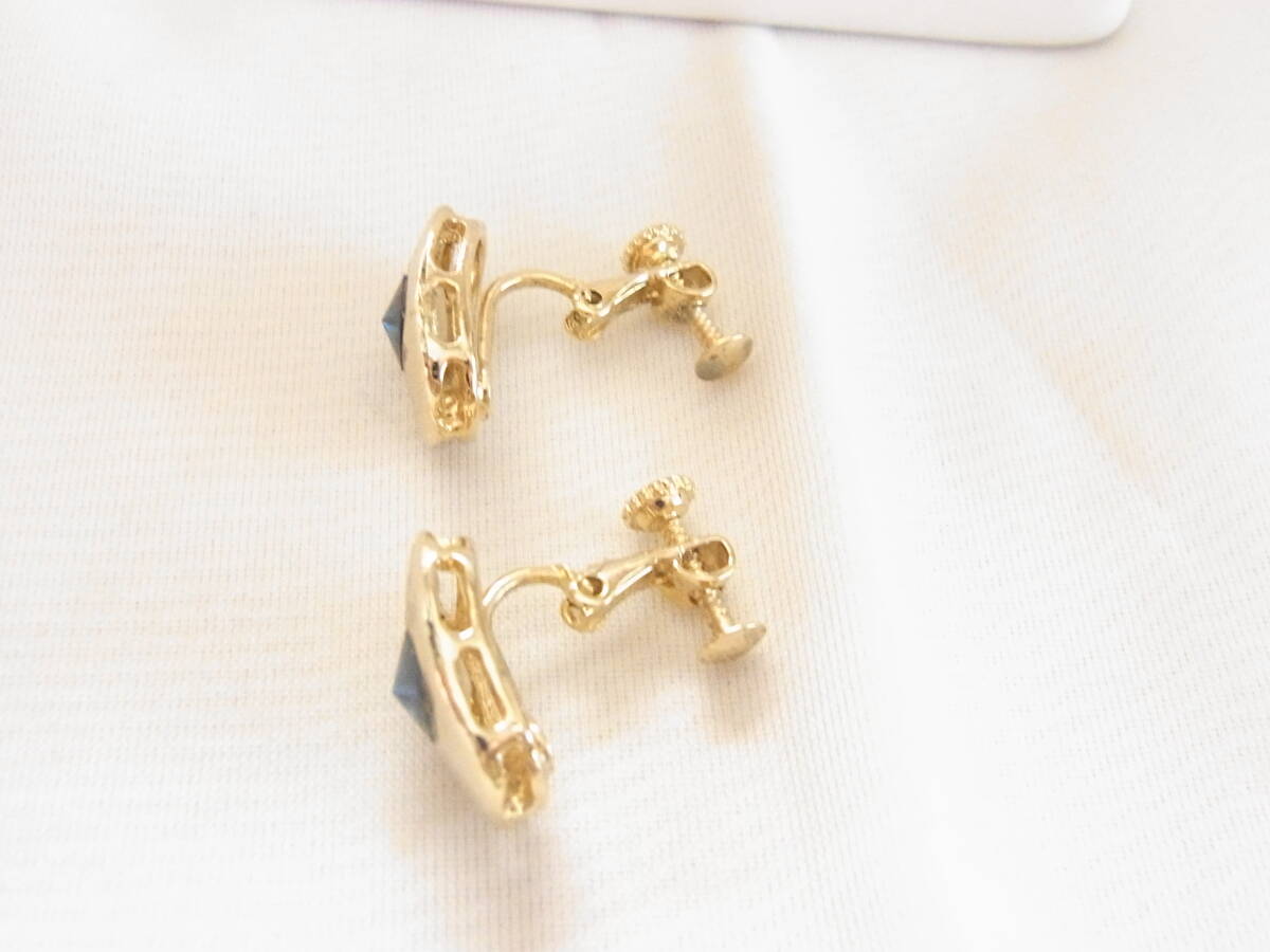 ★ビンテージ/ヴィンテージ サファイアブルートーンのラインストーンとゴールドトーンの2色が豪華感 輝石 縦長系 素敵イヤリング