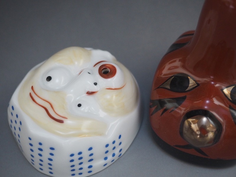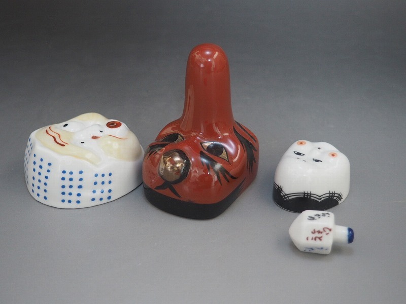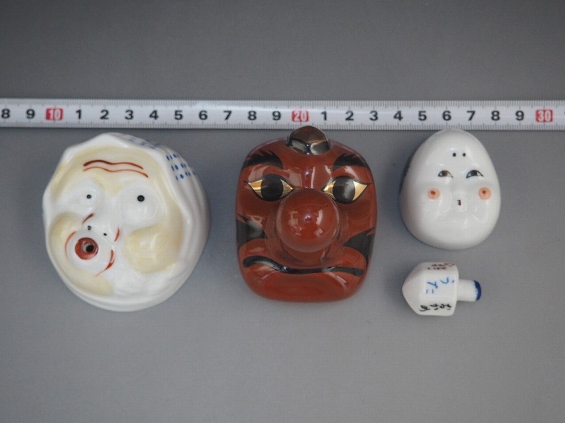 | A3896 はりま家 土佐 可杯 化粧箱付 ☆ 美品 良品 無傷 酒器 おかめ ひょっとこ 天狗 猪口 ぐい飲 ぐい呑 酒杯 酒盃 可盃 磁器 郷土 民芸品 | ||