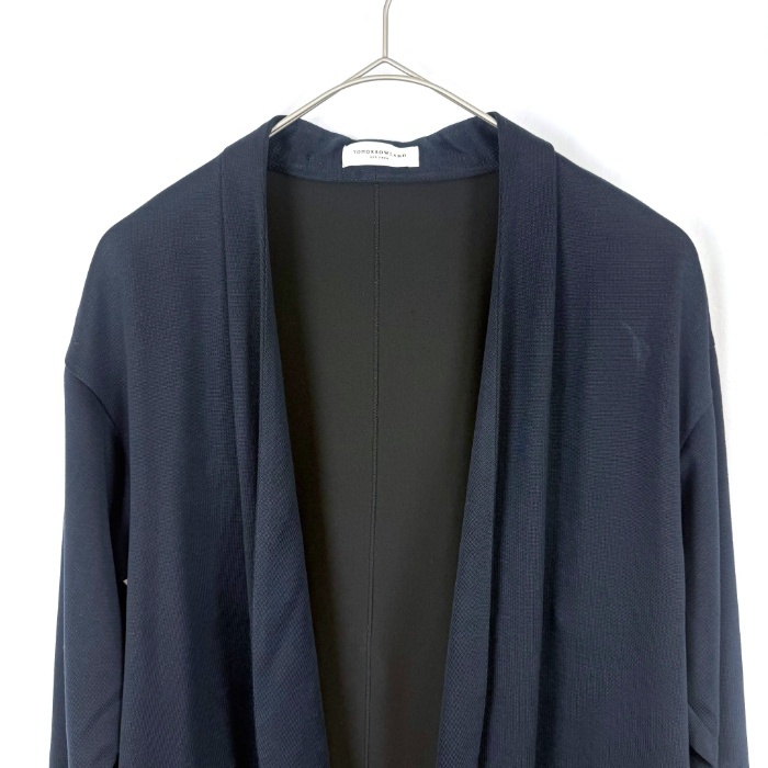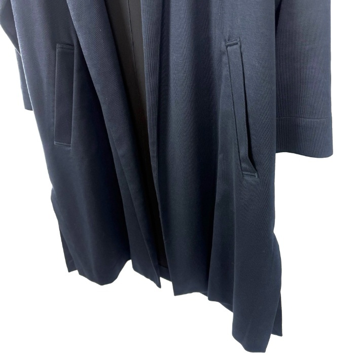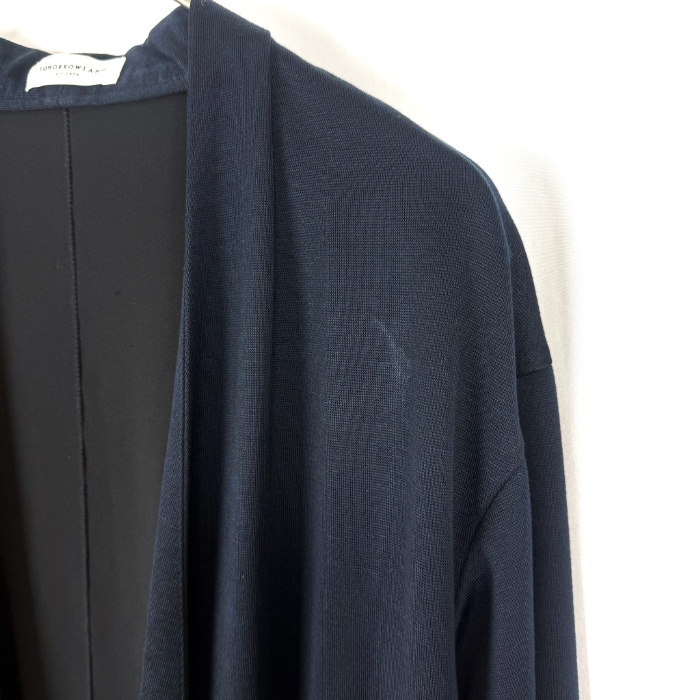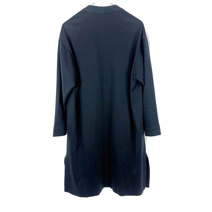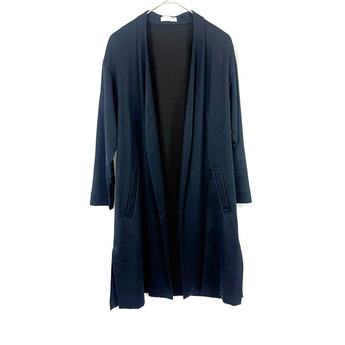 【コメント】 サラっと羽織れるカーディガンコートです。少し光沢のある上品なデザイン。留めボタンなどはありません。左脇近くと後ろ裾にうっすら白汚れ、お腹付近にシミがありますが全体的には状態の良い綺麗なお品物です。 |