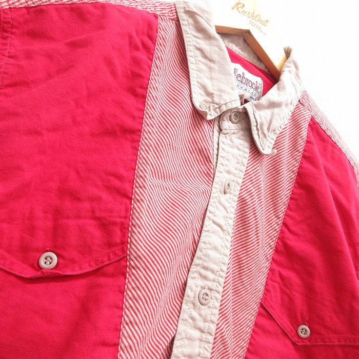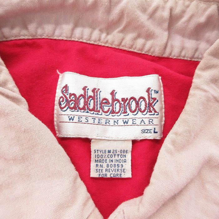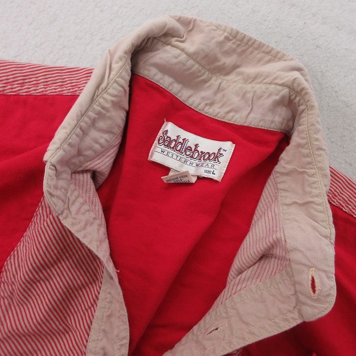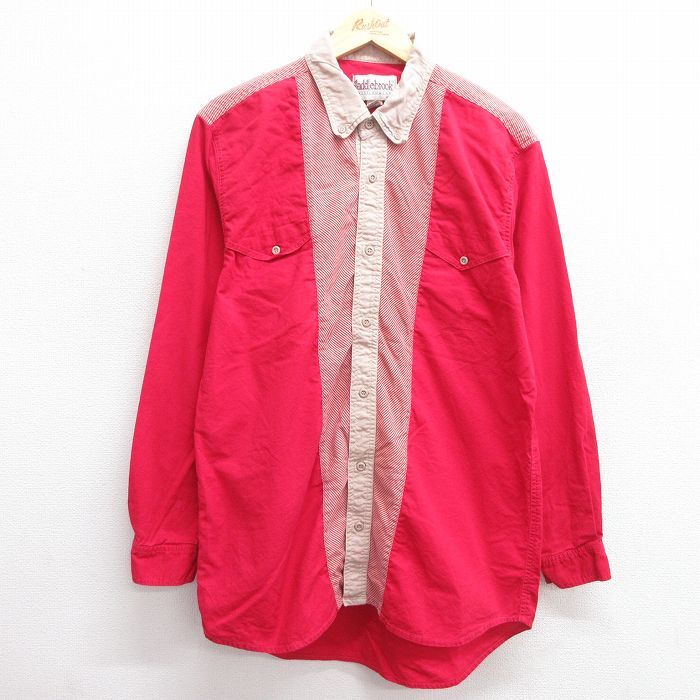 【商品名】 L★古着 長袖 ウエスタン シャツ メンズ 90年代 90s コットン ボタンダウン 赤他