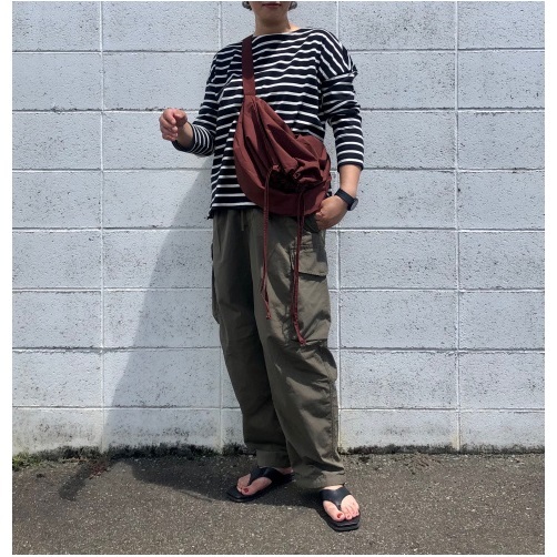 - 巾着っぽく絞ったり、折りたたんだり、ドローコードを使ってアレンジできる。