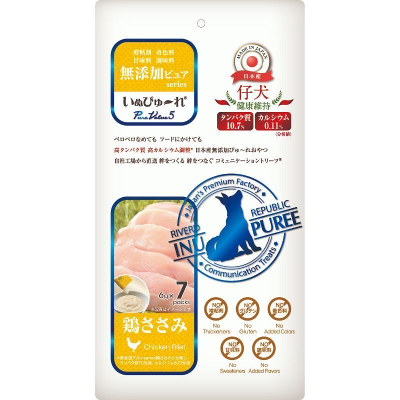 【商品名:リバードコーポレーション いぬぴゅ~れ 無添加ピュア PureValue5 仔犬 健康維持 鶏ささみ 6g×7本 犬用おやつ】