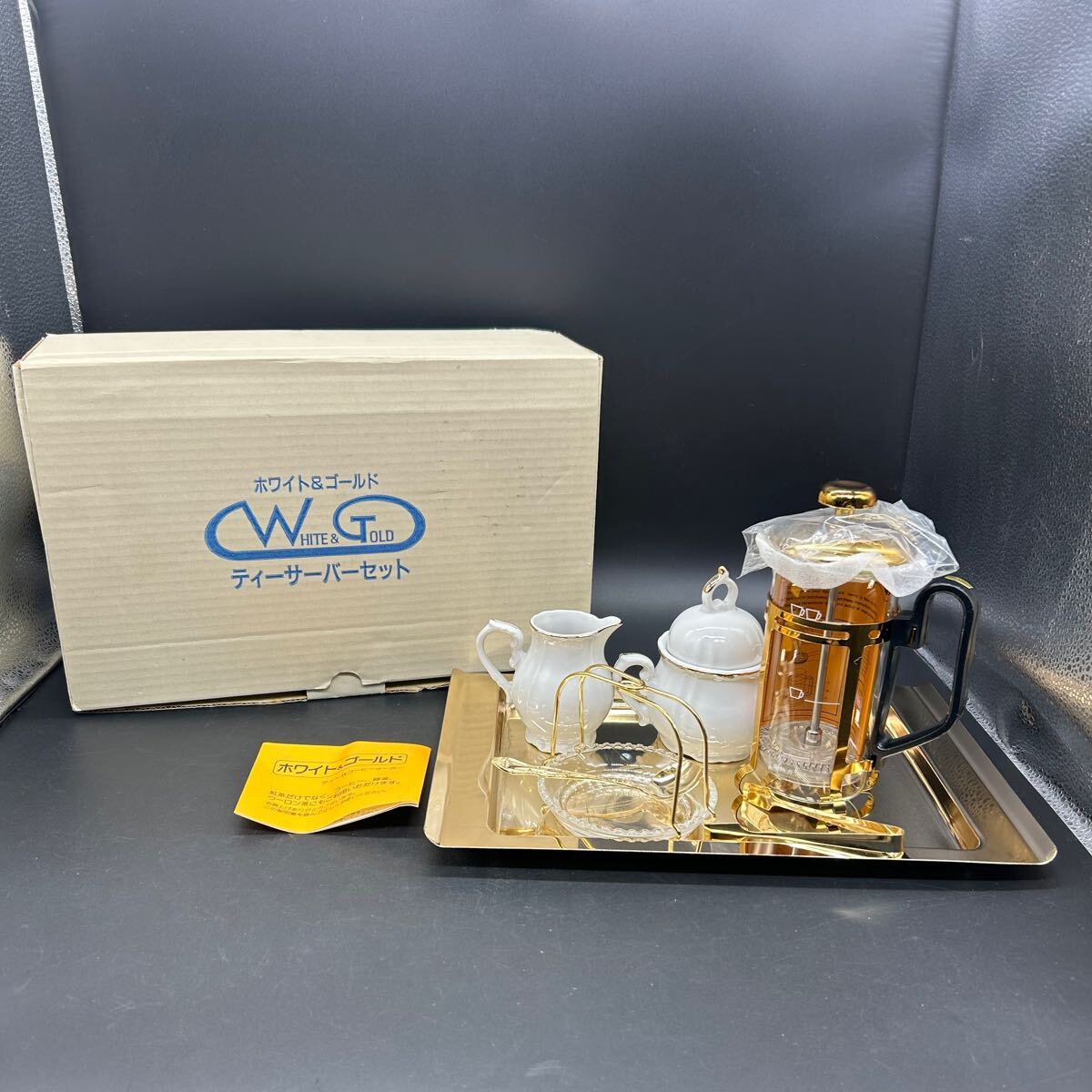 セシルゴールド ティー&コーヒーメーカー ホワイト ゴールド ティーサーバーセット シュガー ミルクポット 食器 ニ7
