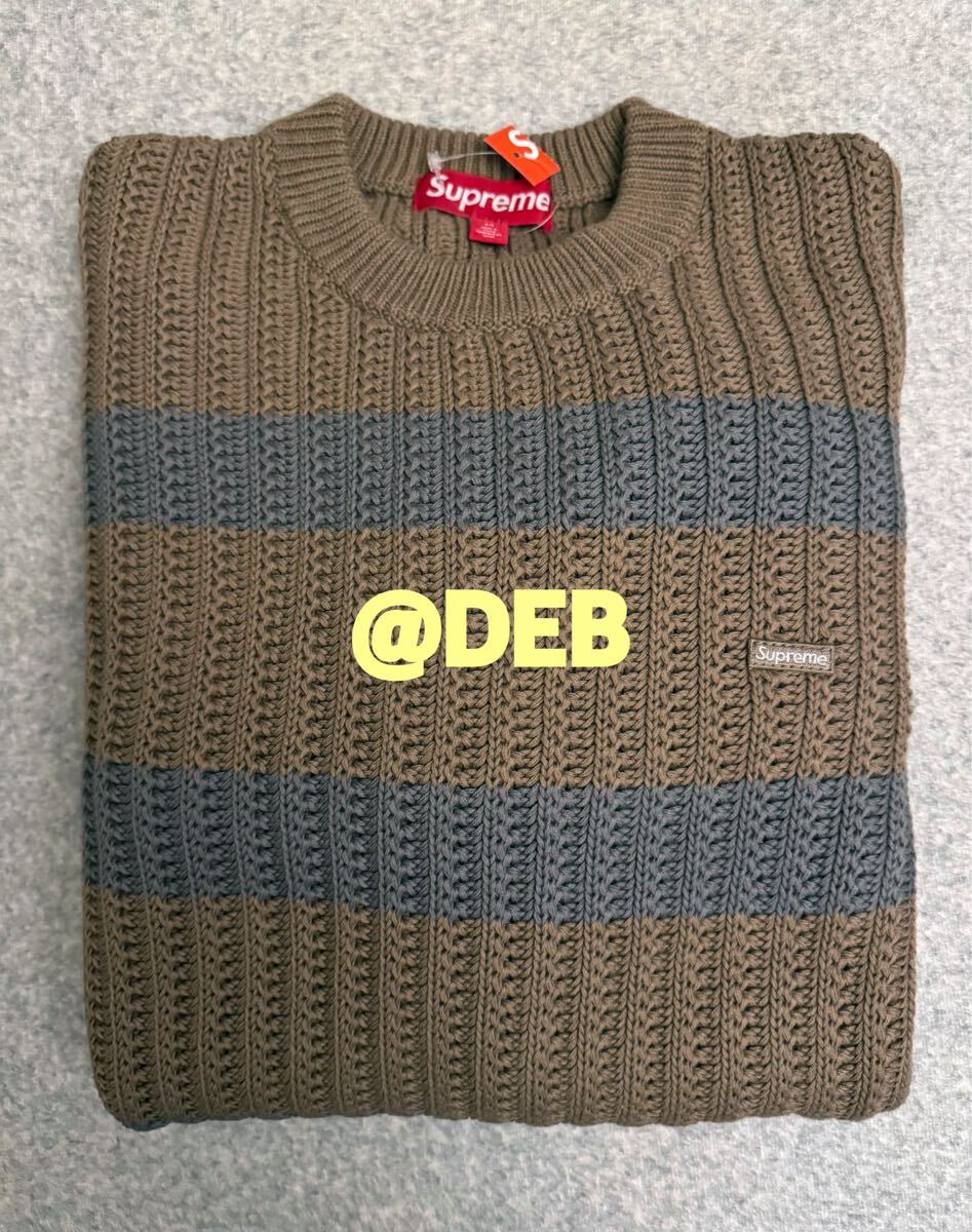 Supreme 2025SS Loose Gauge Stripe Small Box Sweater Khaki Mサイズ