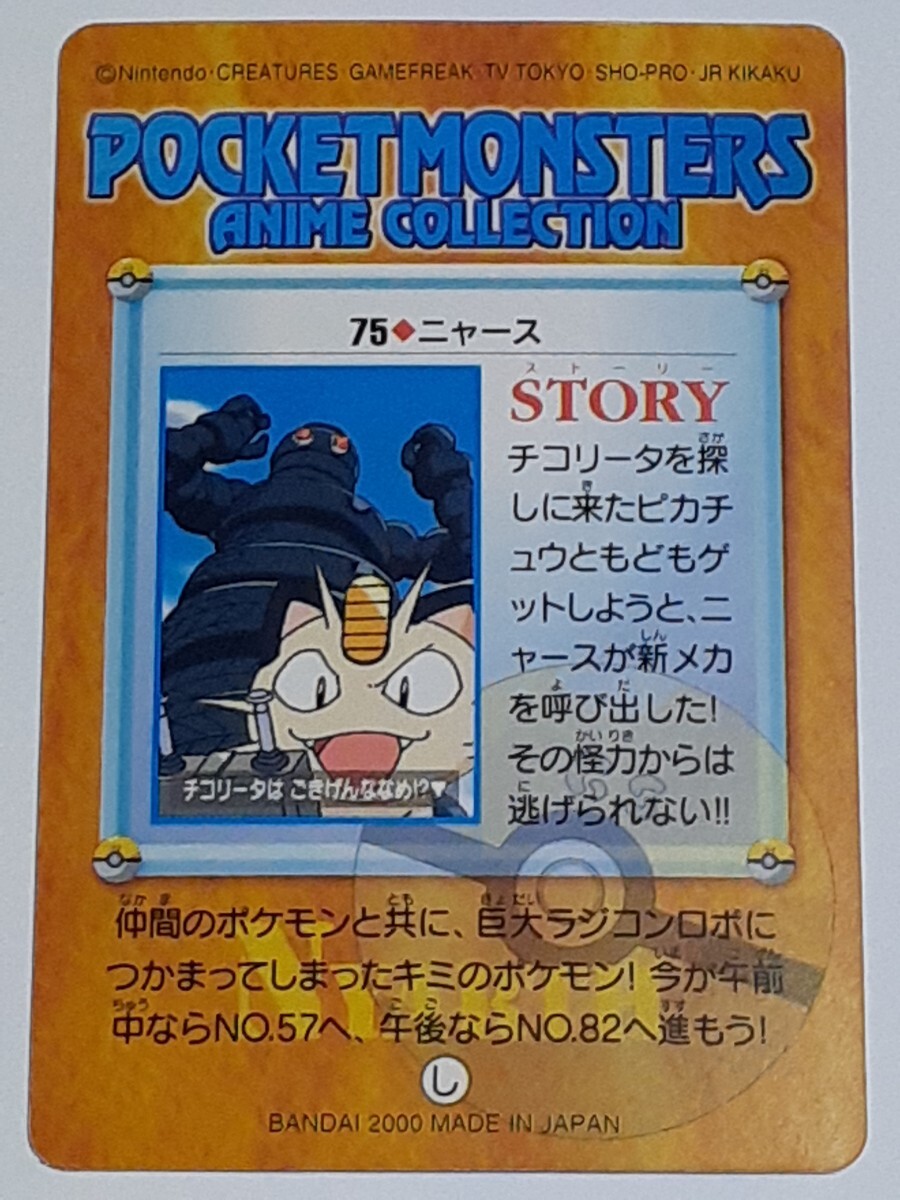 ☆2000年 カードダス ポケットモンスター アニメコレクション №75 『ニャース』  Carddass POCKET MONSTERS