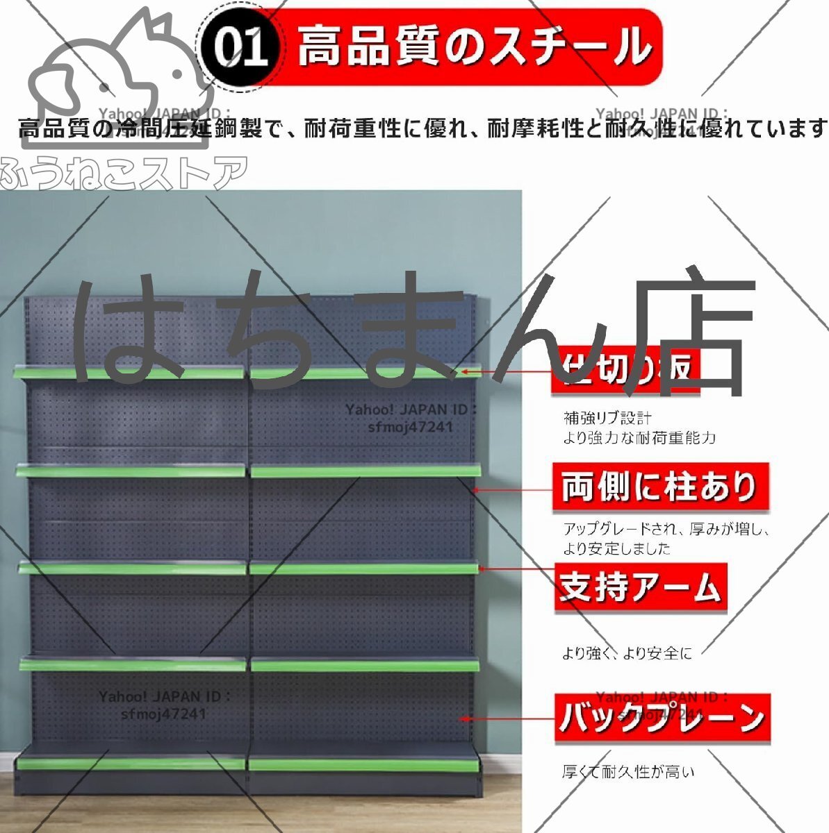 【冷間圧延鋼製スーパーマーケットラック】: 厚みのある冷間圧延鋼構造、防水/防錆、色落ちなし。 安定していて揺れません。 そのため、この収納ラックは商品を吊り下げて展示することができます。 単層耐荷重80KG。