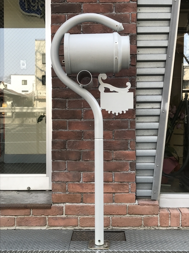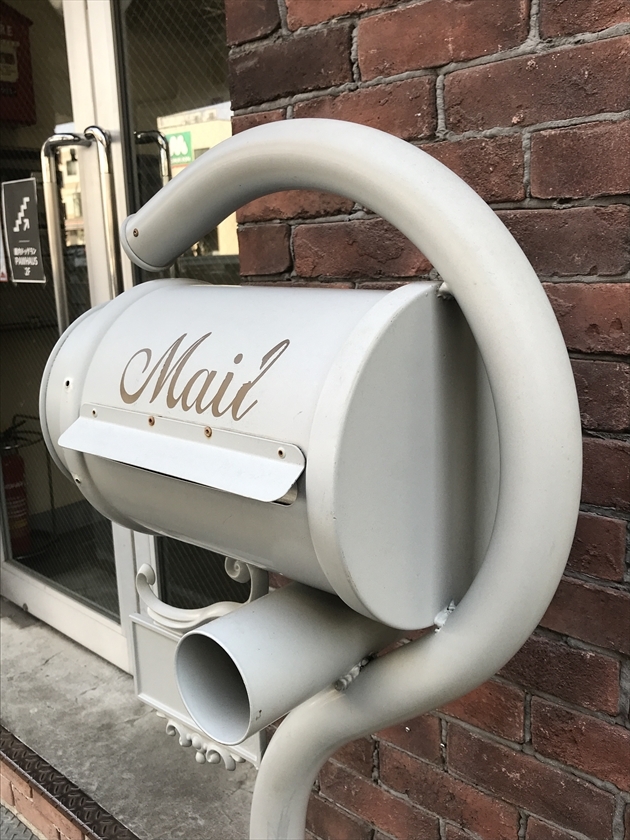 アンティークのミルク缶を横倒しにしたような郵便受け部の下に、新聞受け、ネームプレートも付いています。
