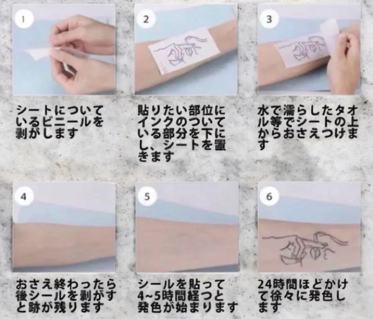 貼り付け方は、一般的なタトゥーシールと同じ!
