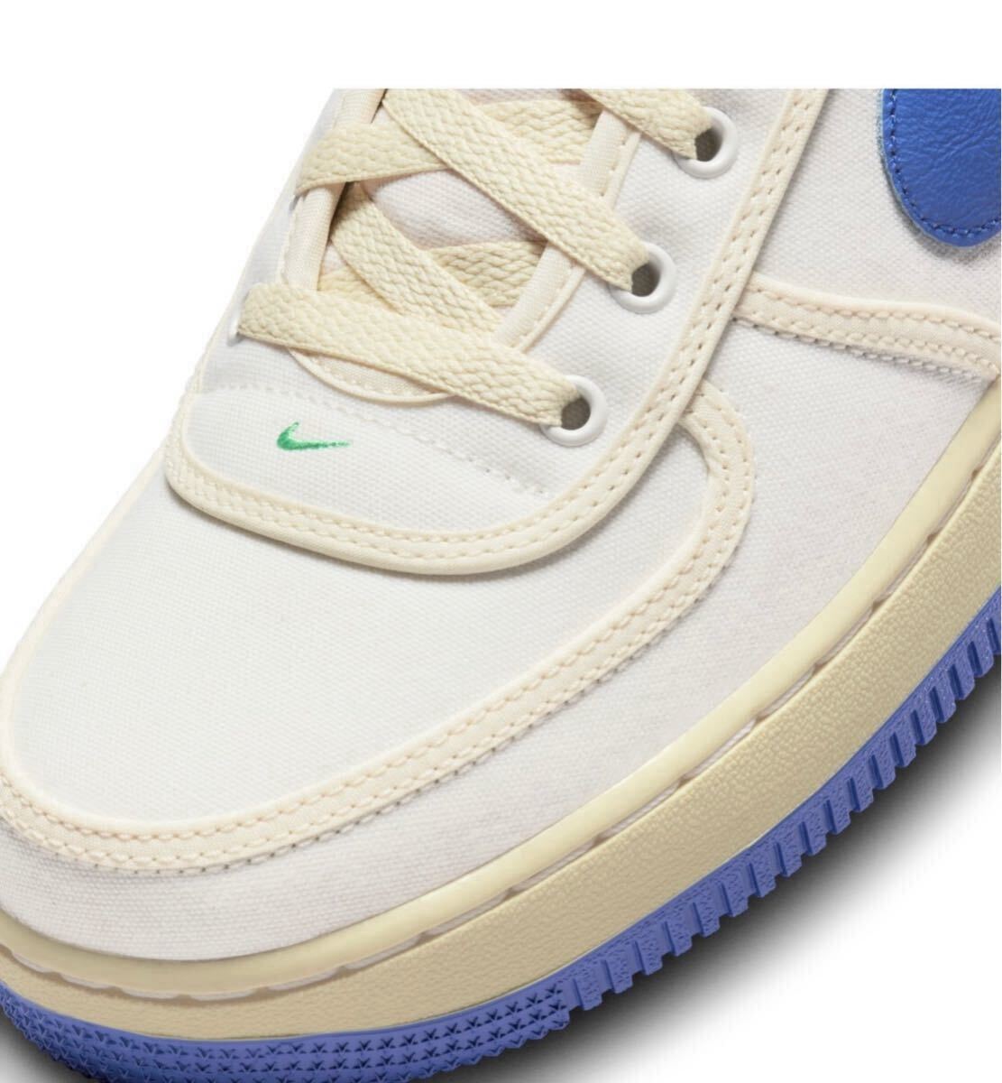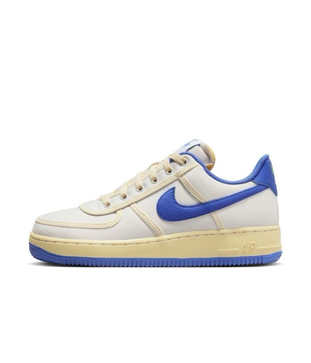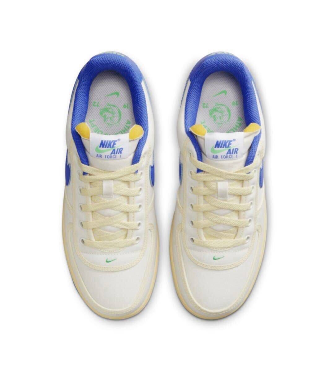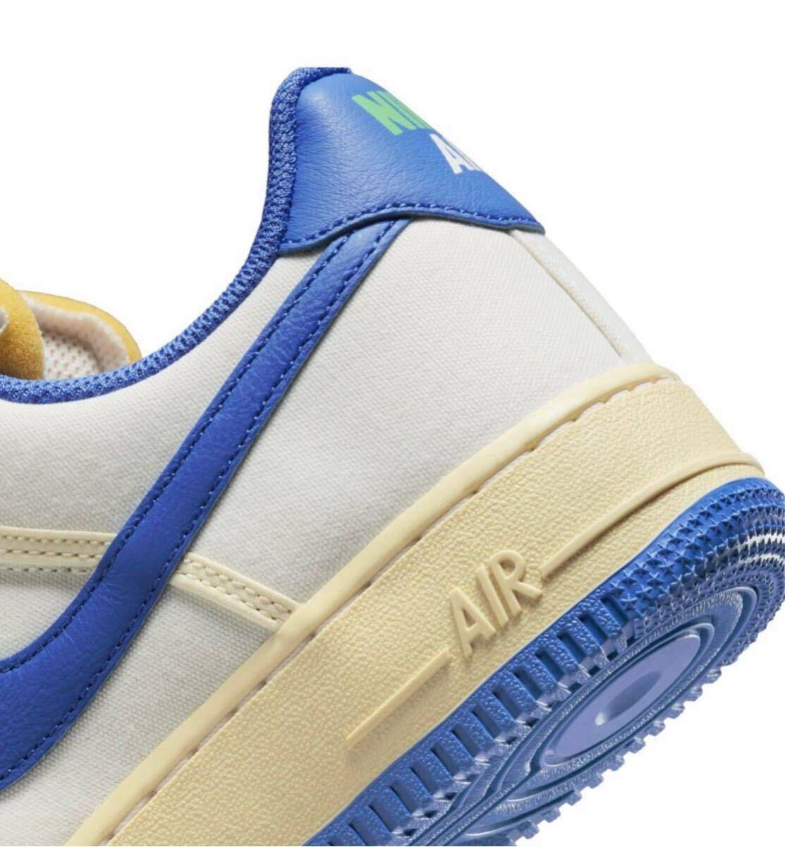 今作のポイントは、レトロな風合いを感じるホワイトとブルーの印象的なデザインだ。ホワイトのキャンバス地にセイルオーバーレイを重ね、ミディアムブルーのスウッシュとヒールパーツで遊び心を加えた。これまでにないヴィンテージ感を感じられる一足に仕上がっている。