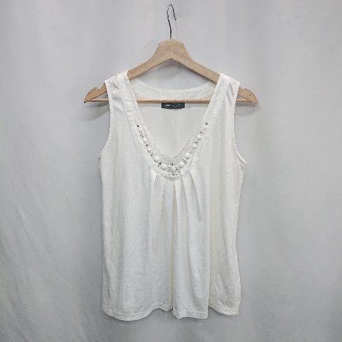 ◇ ⊂ Φ QUEENS COURT クイーンズコート ビジュー装飾 タンクトップ サイズ2 ホワイト レディース E