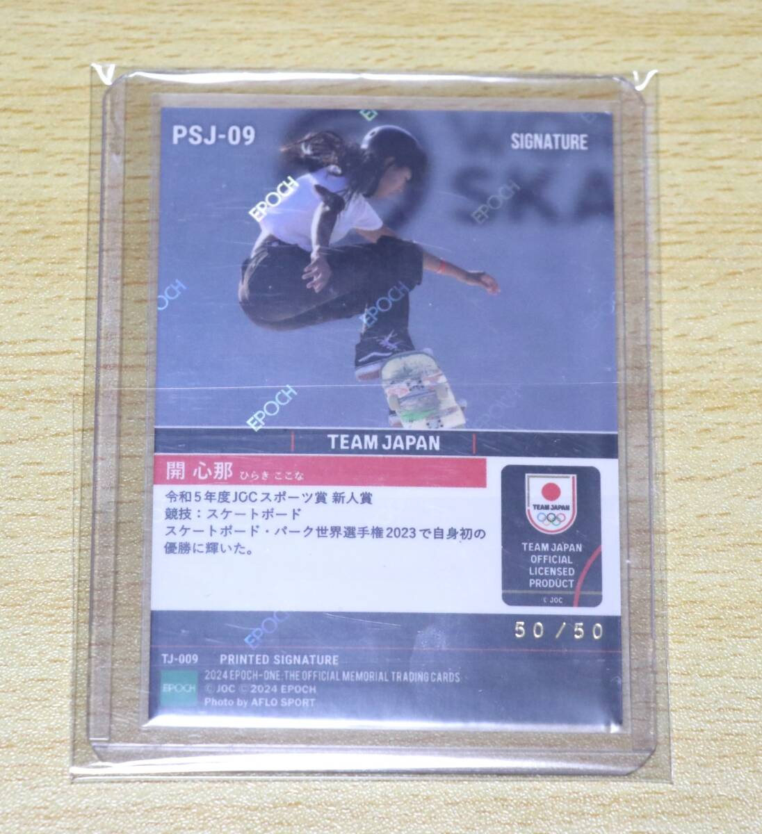 スケートボード 開心那 EPOCH ONE エポックワン プリントシグネチャーカード(プリントサインカード) ラストナンバー 令和5年度 JOCスポーツ賞 新人賞 50枚限定発行です。気に入って頂けた方の落札を心よりお待ちしております。 商品は定型郵便(110円)又はゆうパケットポストミニで発送致します。厚さの関係上、定型郵便の場合は片面段ボール補強、ゆうパケットポストミニの場合は両面段ボール補強となります。どうかよろしくお願い致します。