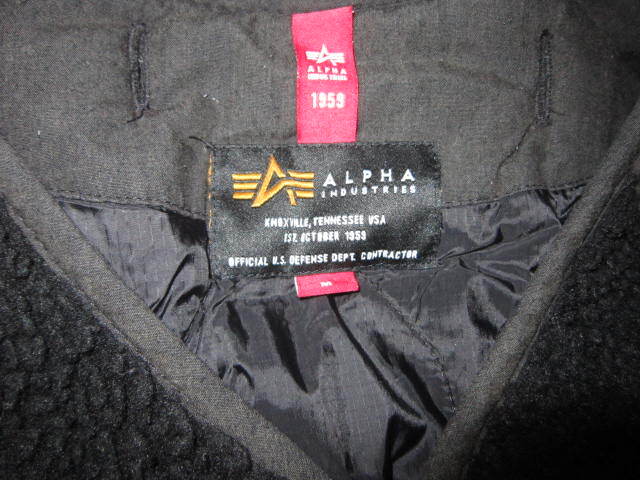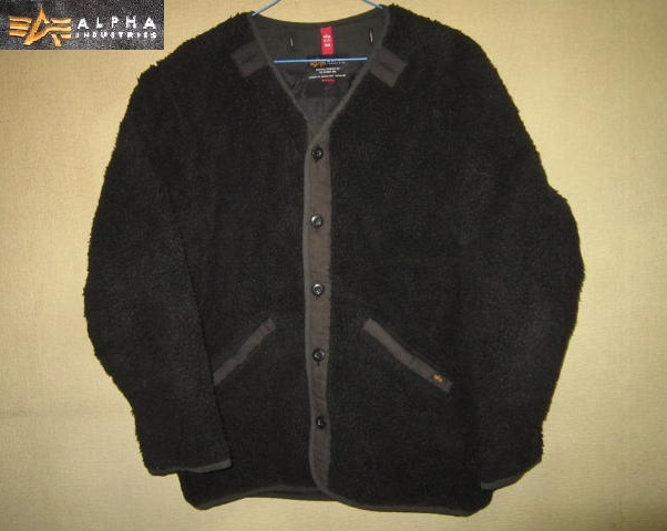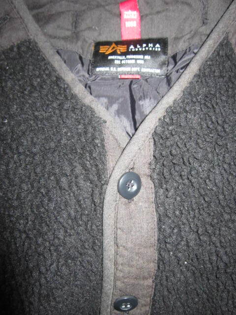 ALPHA INDUSTRIES アルファ ノーカラー ボア フリース 中綿 ミリタリー ライナー ジャケット 黒 M 内側キルティング ジャケット インナー