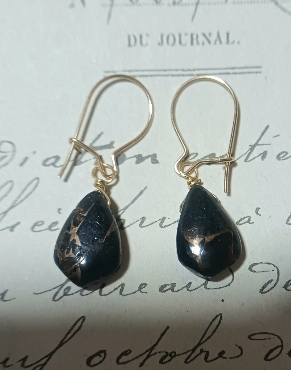 金属:ピアスフックとワイヤーは真鍮に14金GF。