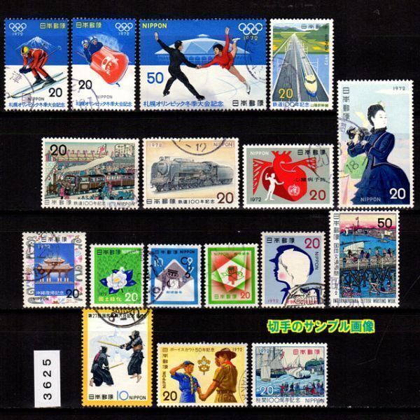 3625◆使用済 1972【記念 17種完】◆サンプル画像・状態や消印はロット毎に様々◆送料特典⇒説明欄
