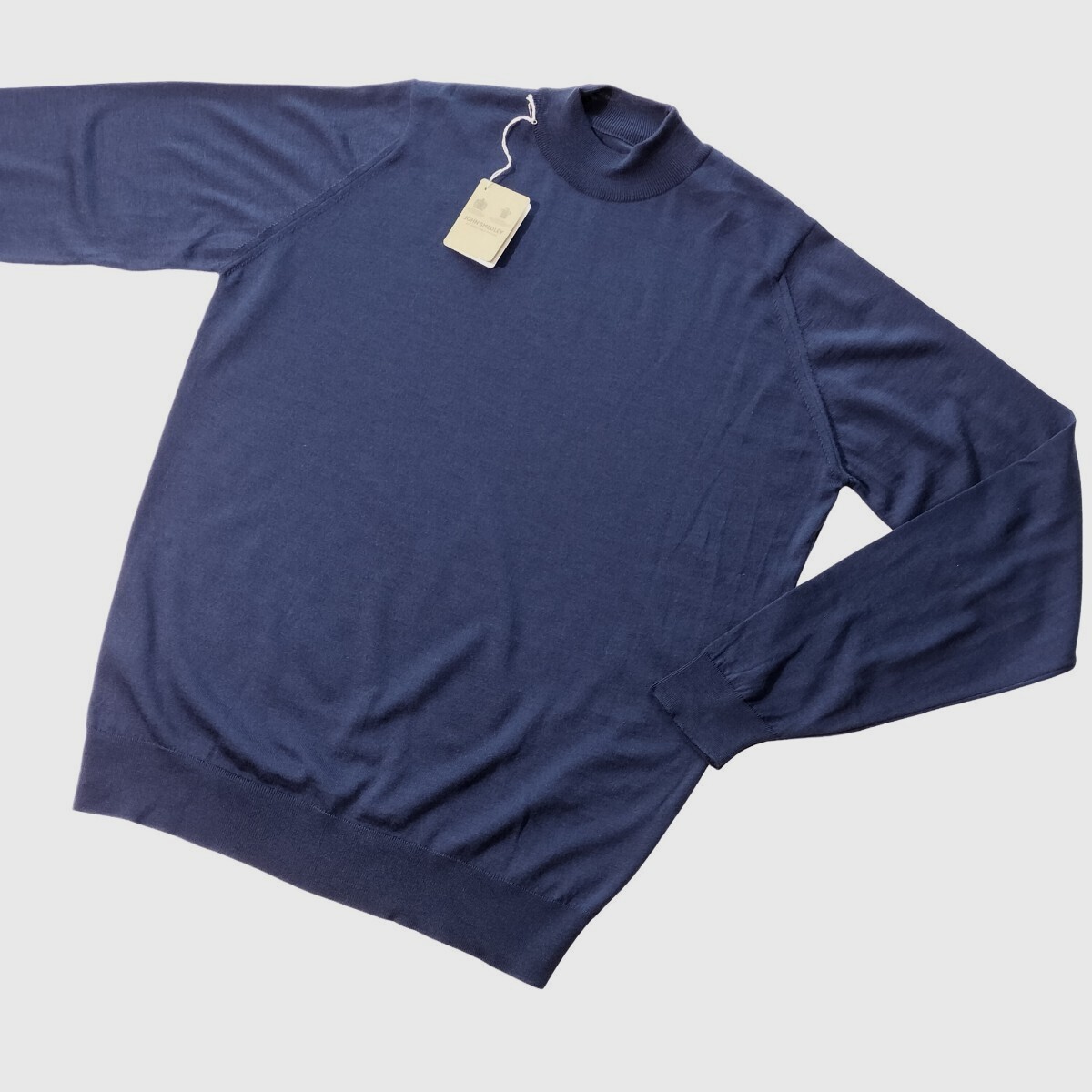訳あり メンズ L ジョンスメドレー 最高級メリノウール モックネックセーター HARCOURT ネイビー系 HEMINGWAY BLUE JOHN SMEDLEY