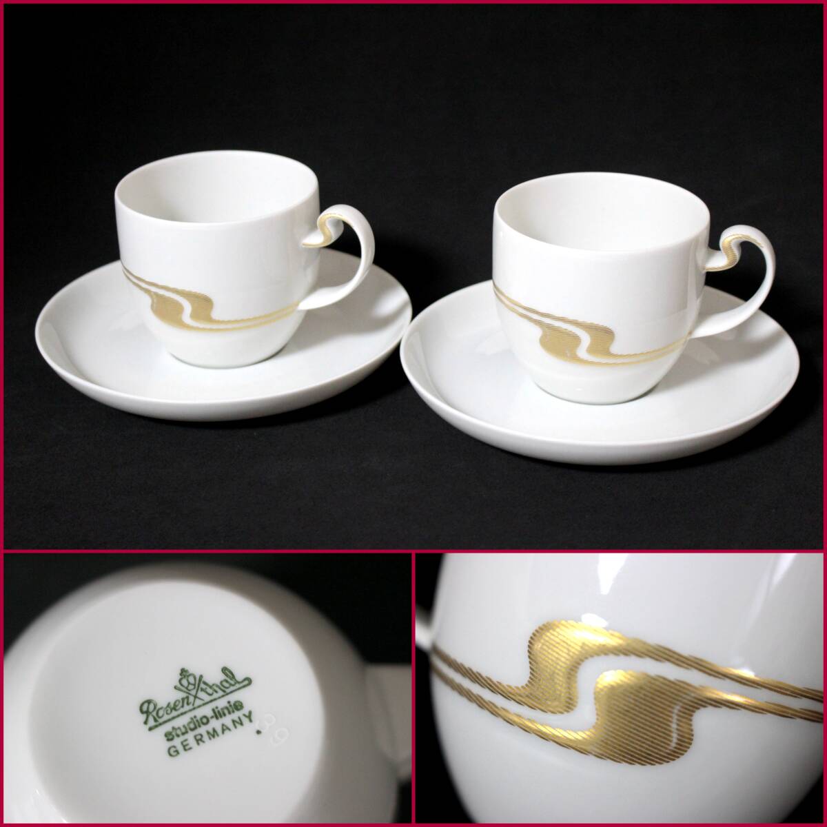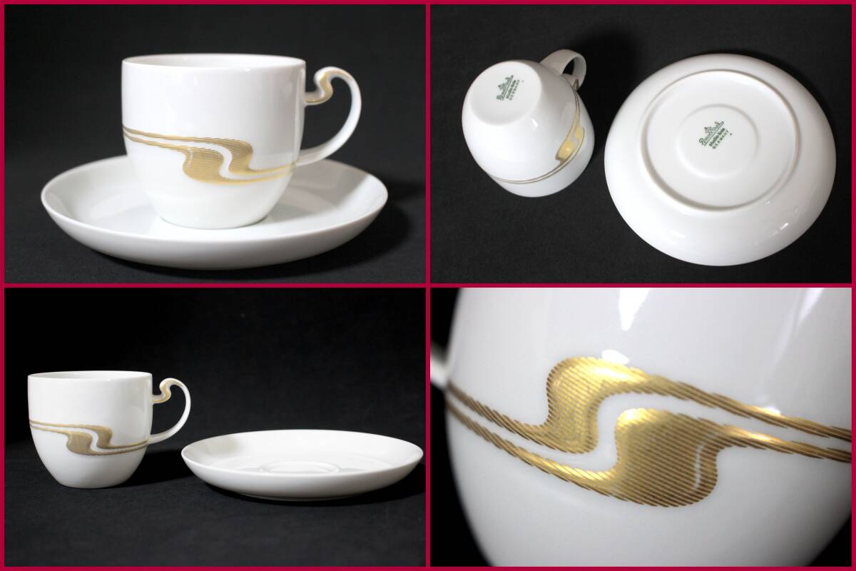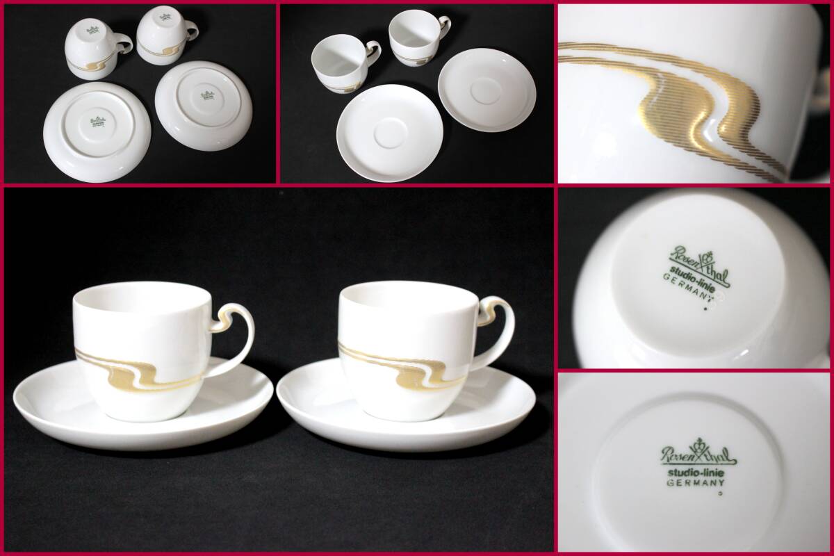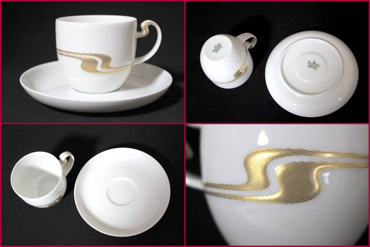 【Rosen・Thal/ローゼンタール】studio‐linie『ASIMMETRIA GOLD・ペアカップ&ソーサー』《良好》ドイツ/高級ライン/2客/レア/BVT4207