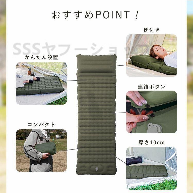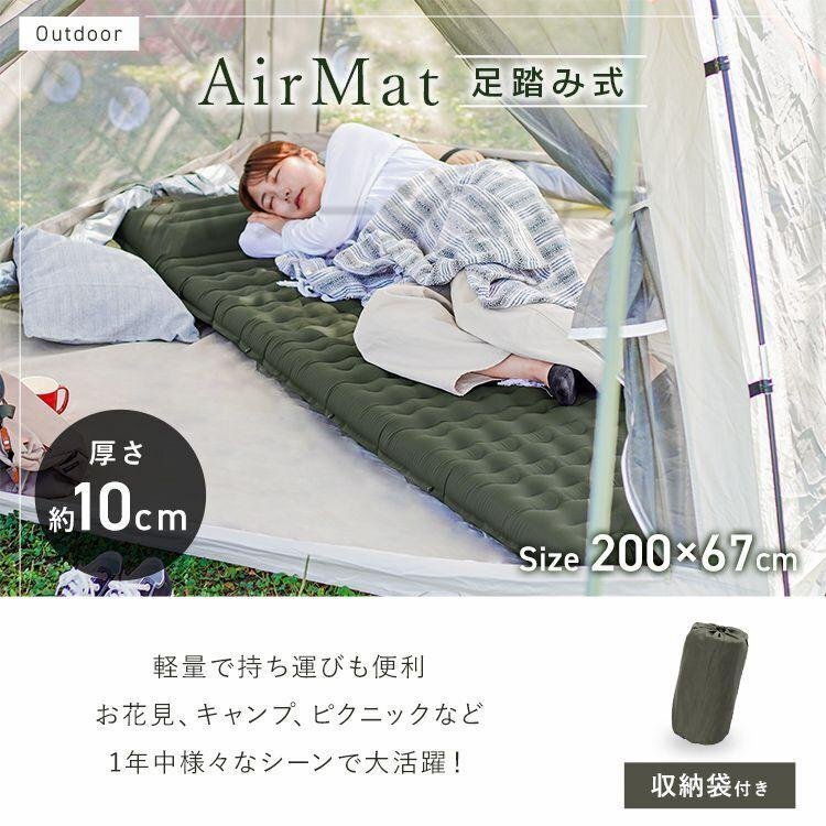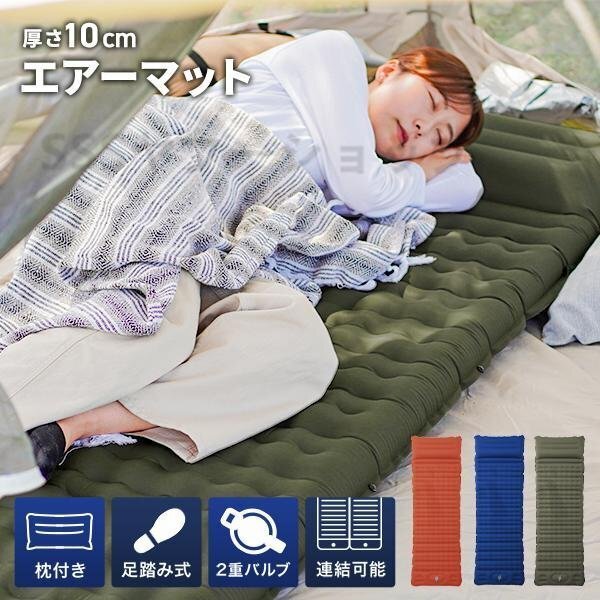 エアーマット エアーベッド アウトドア キャンプマット 厚さ10cm 車中泊マット キャンプ用 足踏み式 無限連結可能 折り畳み 収納袋付 防災