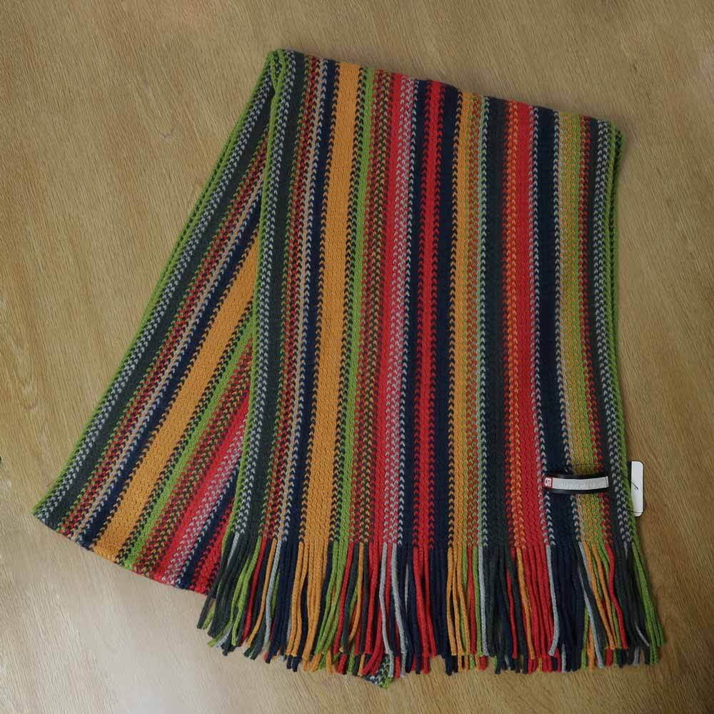 ★カラー=ネイビー、マスタード、モスグリーン、レッド、グレーのスモーキーカラーストライプ