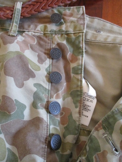 ②ボタンは全て13スター刻印入りメタルボタン仕様、フロント5ボタン、ベルトループ付き、両サイドには大型ポケット(フラップ付き、メタルボタン仕様)後方の2ポケットもフラップ付き、メタルボタン仕様の完璧なディテールです。