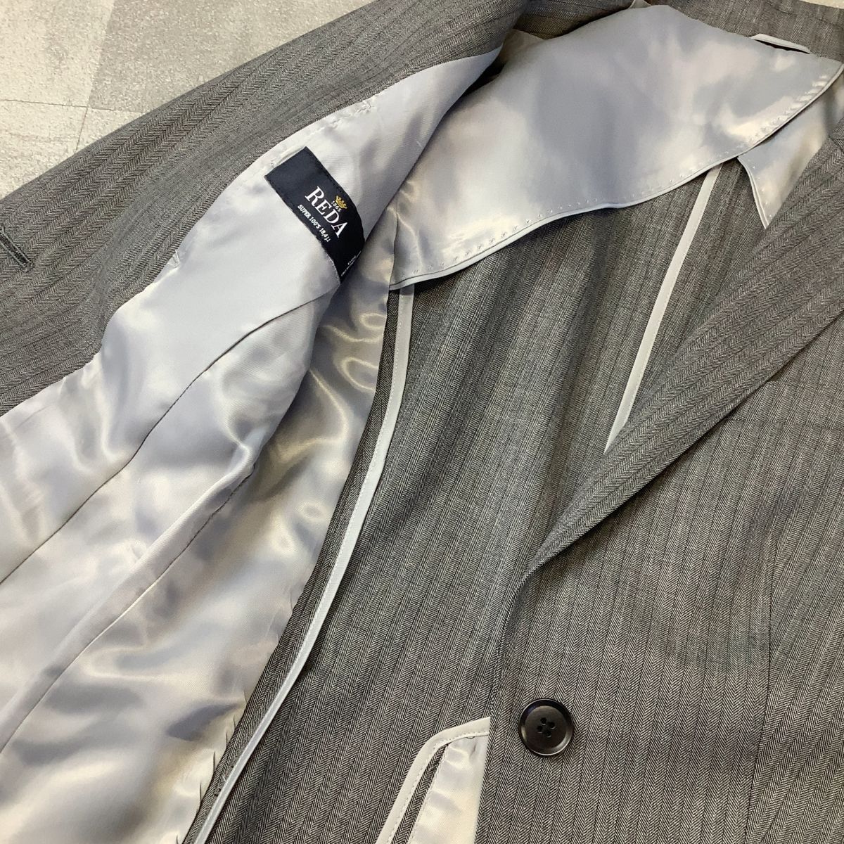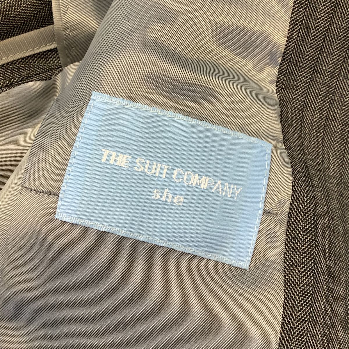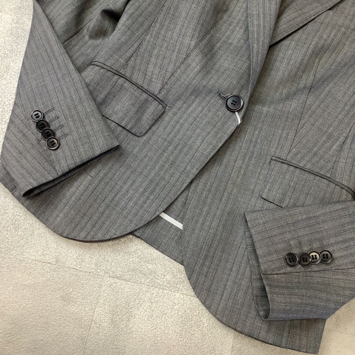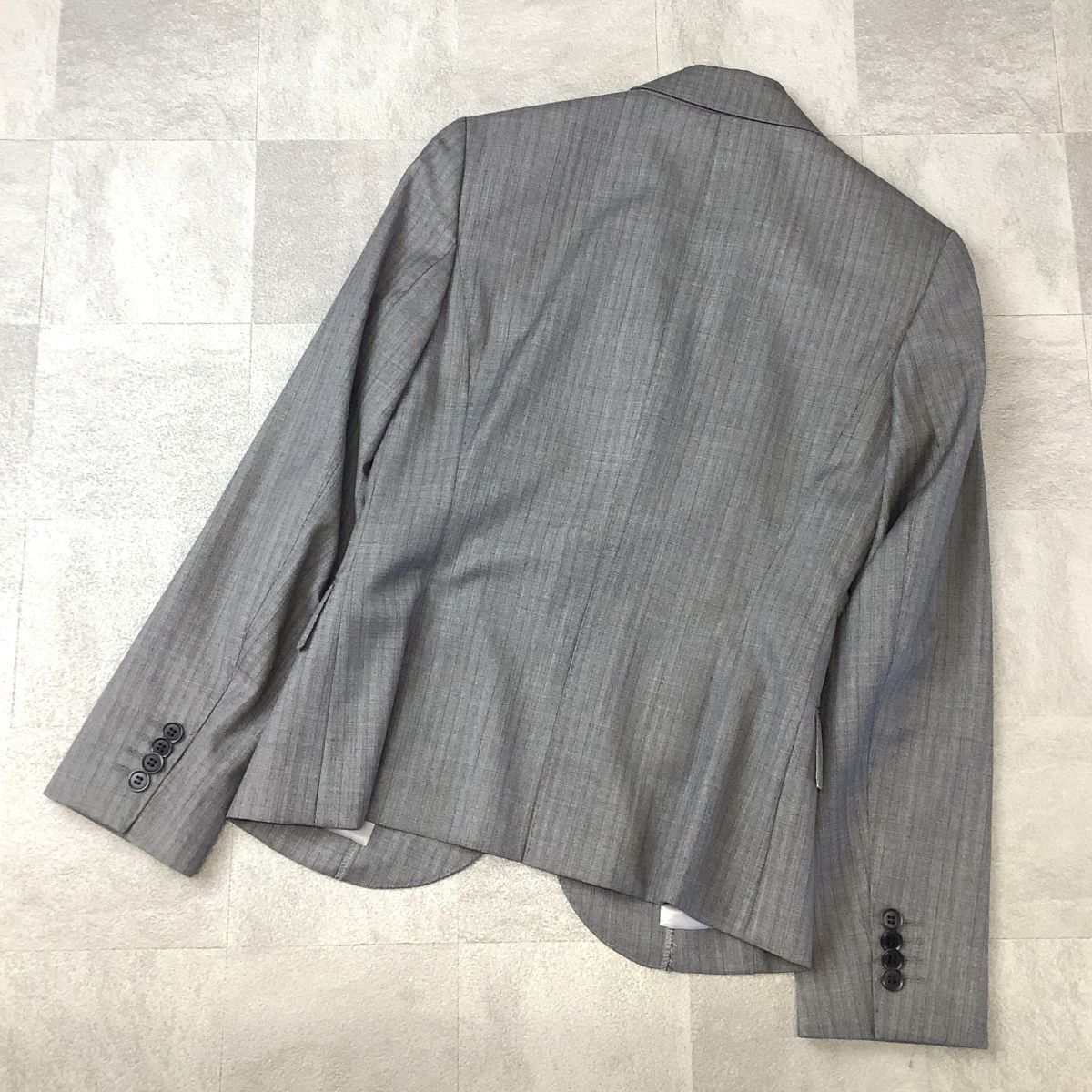 新品 タグ付 THE SUIT COMPANY she 高級REDA生地 ストライプ テーラードジャケット レディース 38 M グレー