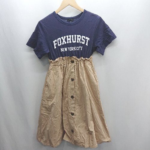 ◇ ⊂ green label relaxing キッズ 半袖 膝丈 ワンピース サイズ150 ネイビー系 レディース E