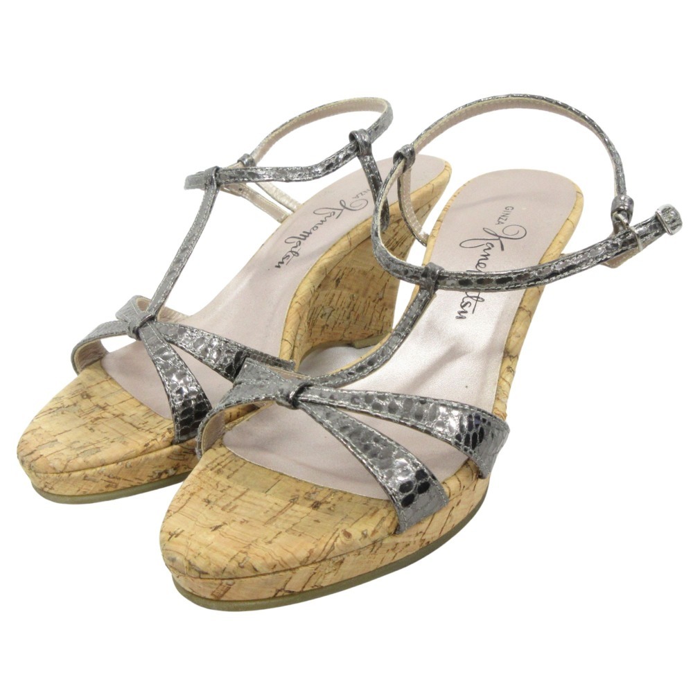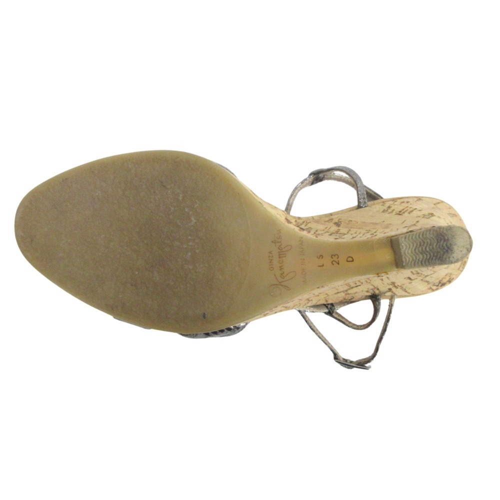 良品 GINZA Kanematsu 銀座かねまつ ストラップ サンダル シューズ ヒール 靴 コルクソール サイズ23cm グレー