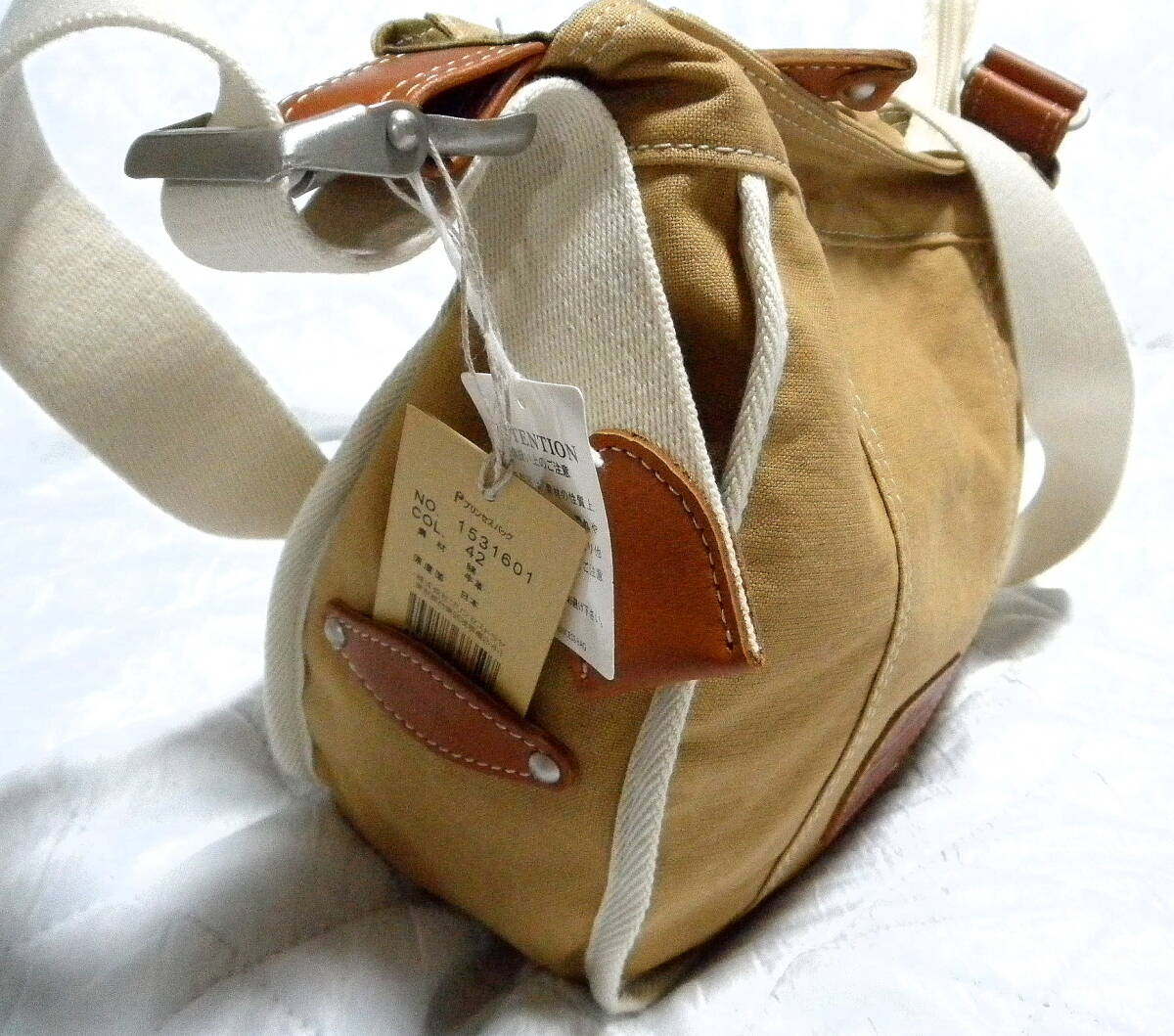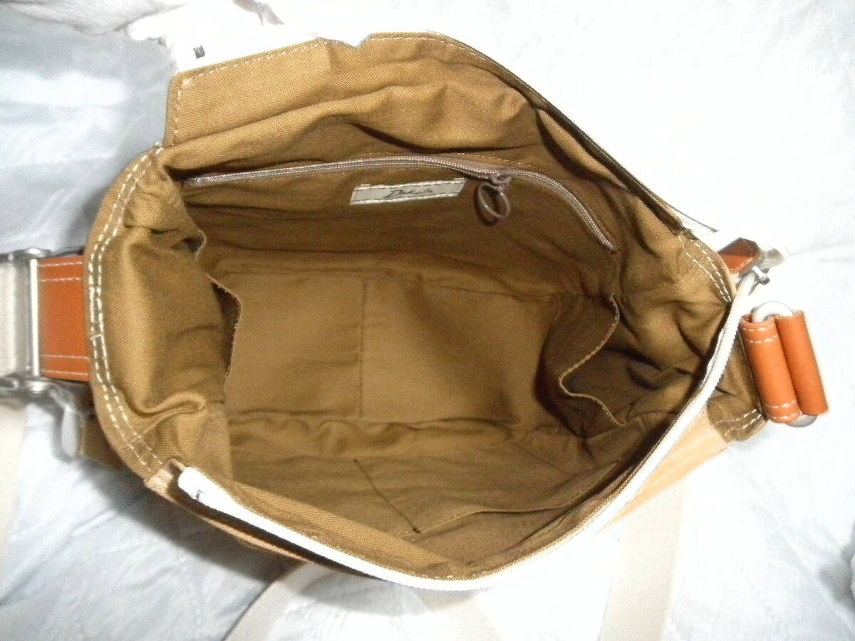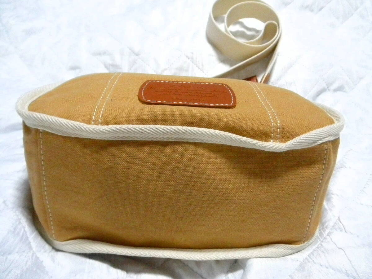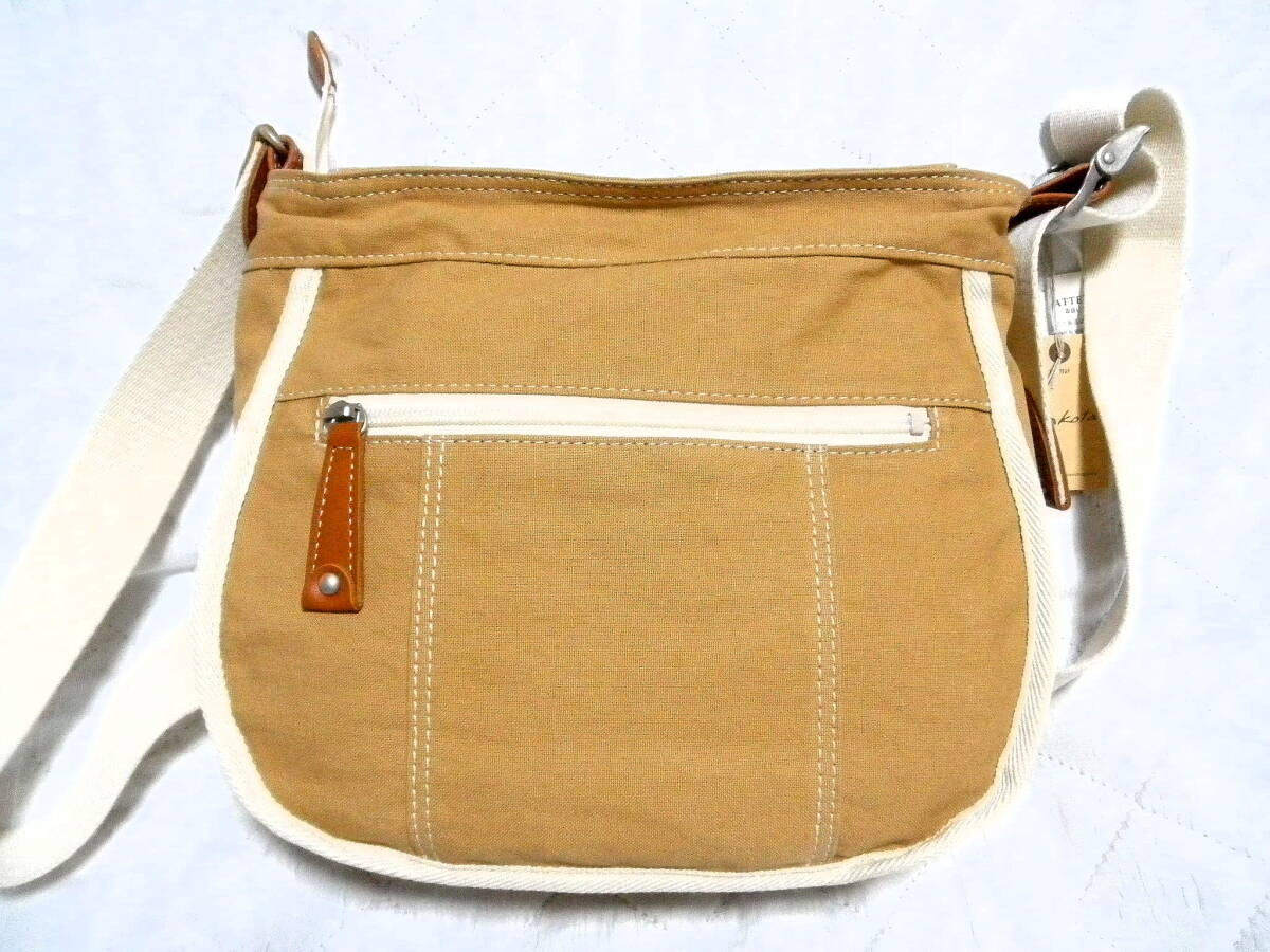 即決 新品 Dakota 日本製 ダコタ ショルダー バッグ ハンドバッグ キャメル ブラウン レザーワッペン 斜めがけ 牛革 コットン 未使用