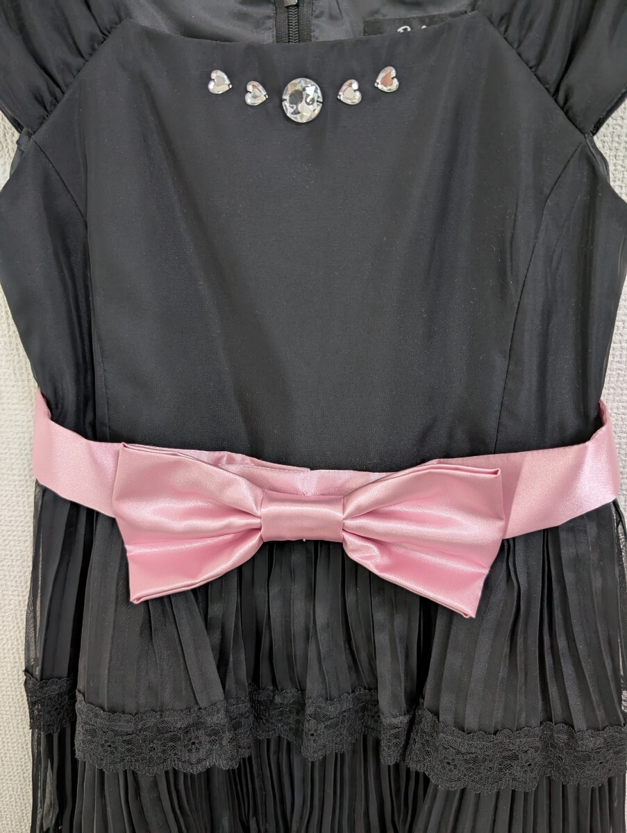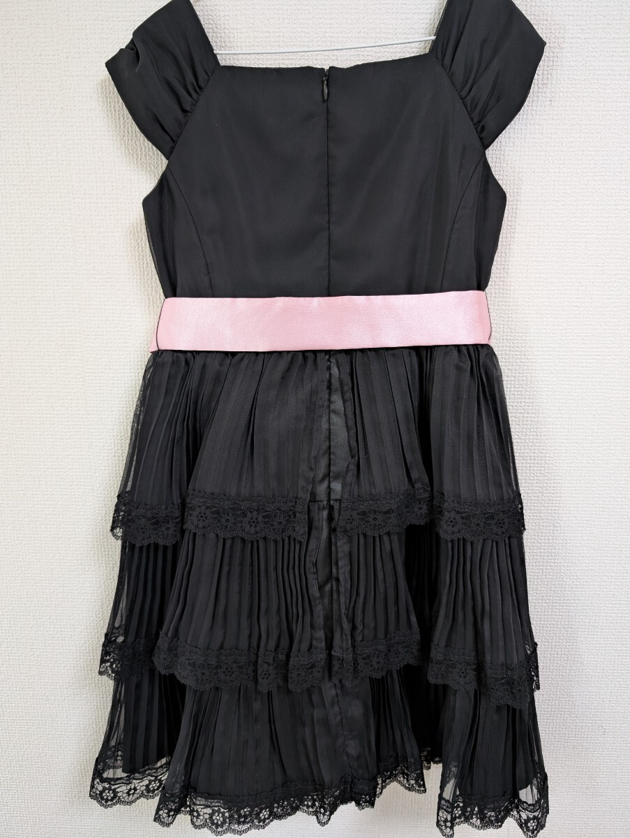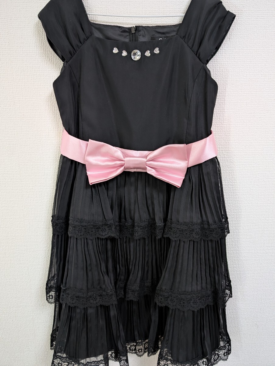 黒のフリルスカートにウエストのピンクのリボンがアクセントになっていてかわいいです。