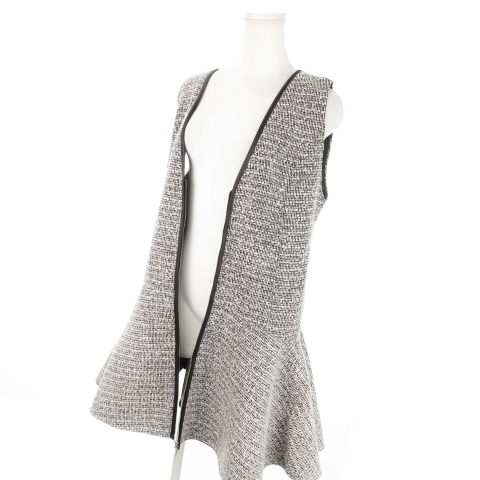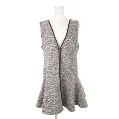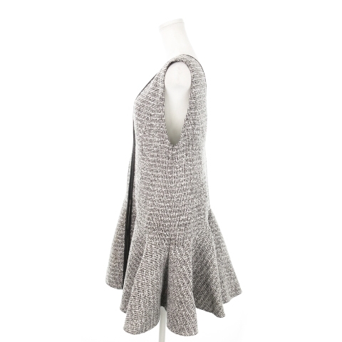 マイストラーダ Mystrada ジャンパースカート ミニ フレア 深Vネック Vバック ジップアップ ツイード ラメ 36 S グレー