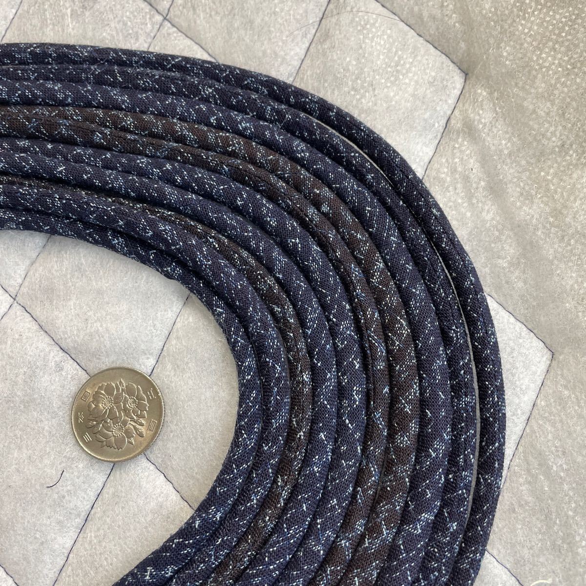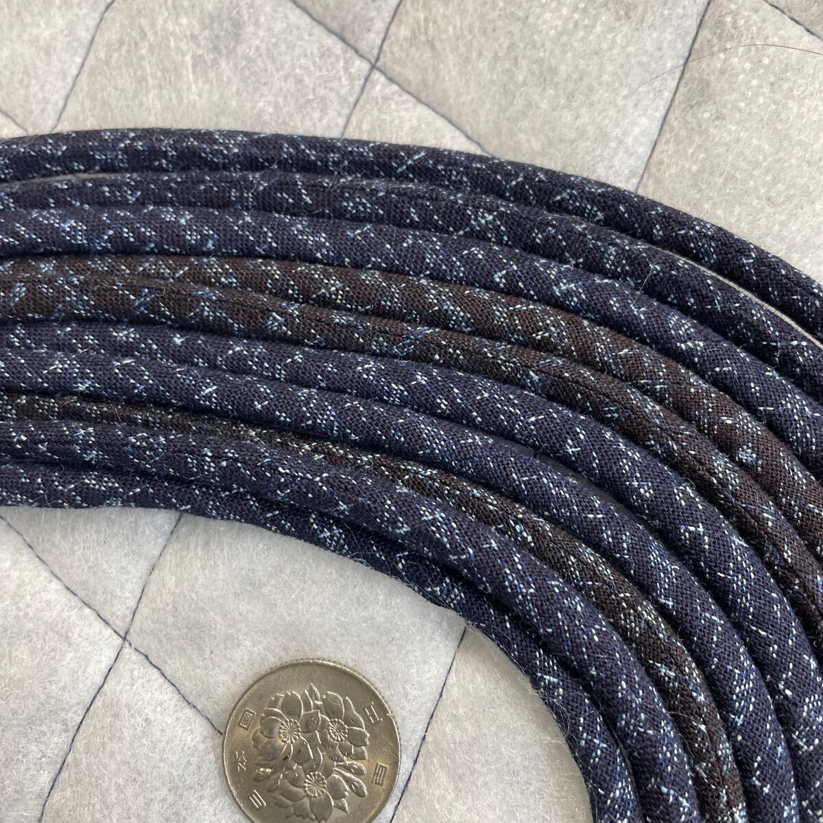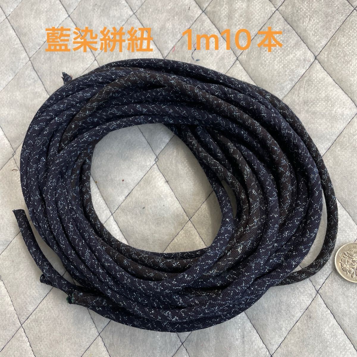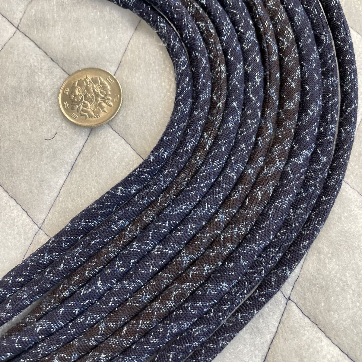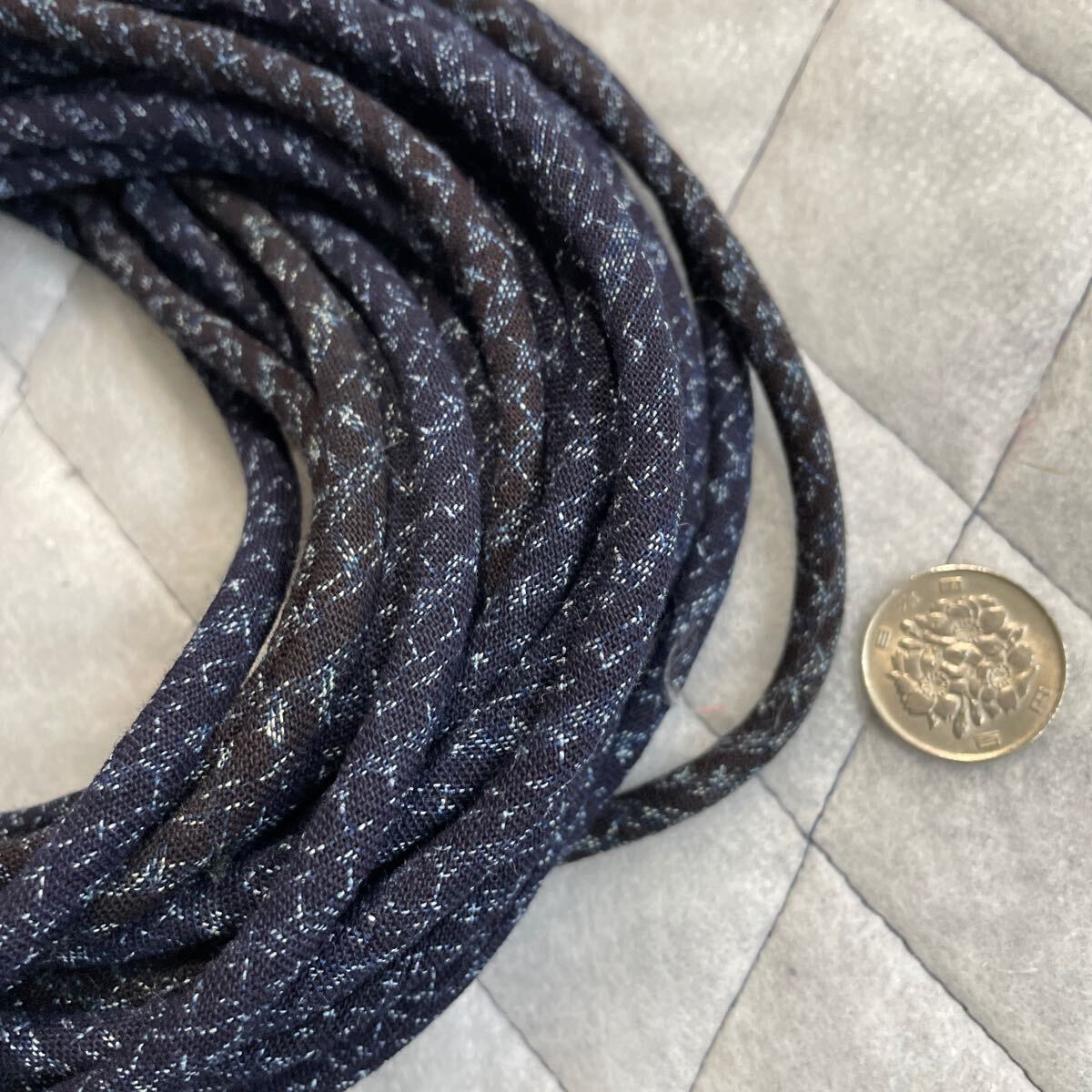 古布着物藍染絣、生地で制作した紐です。