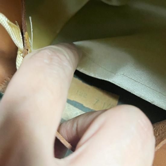 サイズタグが欠損、レザースベリとライナーのロゴ刻印内が星ではなくリーフになっており、ポマードガードが付かず、プロダクトシールのデザインより, 約50年代頃の物と推測できます。