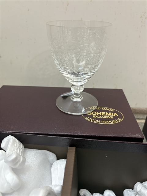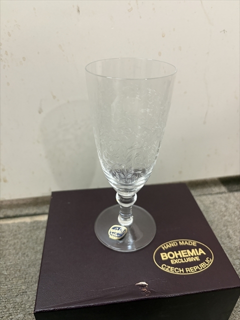 | 伊3054 BOHEMIA GLASS 未使用 ワイングラス フルートペア チェコガラス シャンパングラス クリスタルガラス | |||