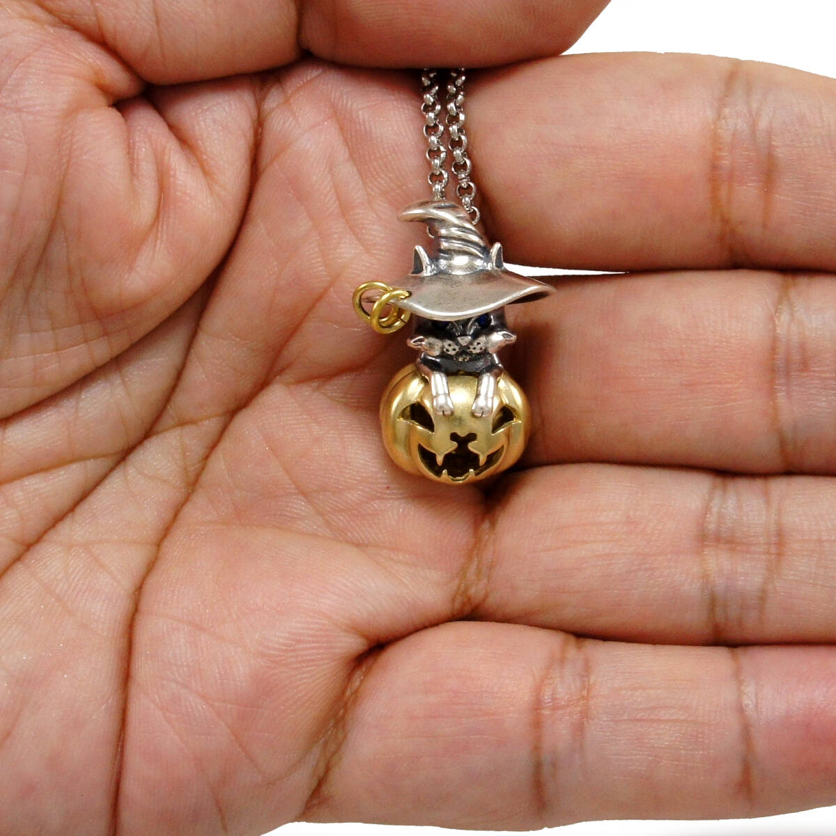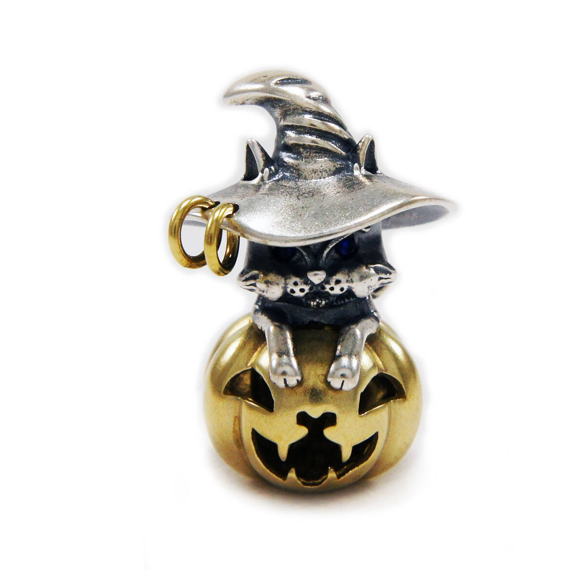猫のパンプキン真鍮 925シルバーペンダント925刻印あり YIN-004