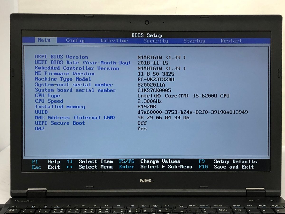 ジャンク/ NEC PC-VK23TXZDU Intel Core i5-6200U メモリ8.19GB ストレージ無し 【K11567】
