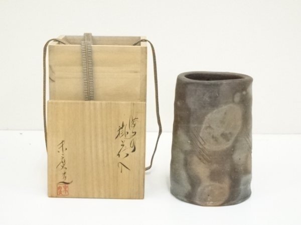 ys7338376; 備前焼 小山末廣造 掛花入(共箱)【道】