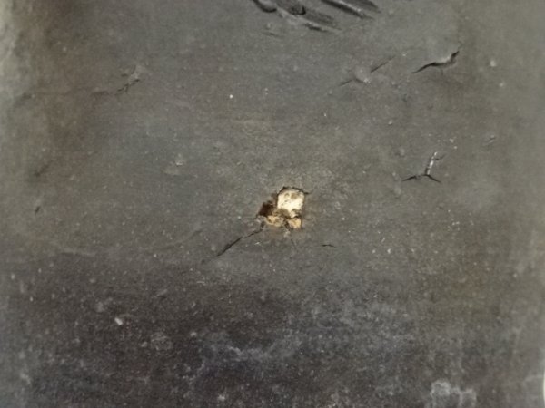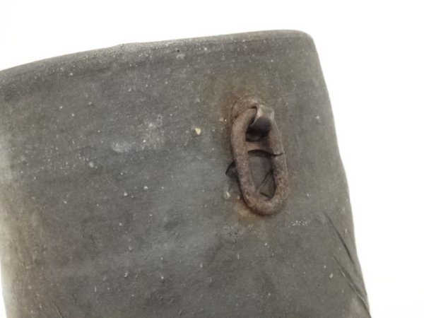 側面に石はぜの窯傷がありますが、制作時の味としてそのままになっております。金具に錆があります。その他に問題はなく、まだまだ使用可能な状態です。