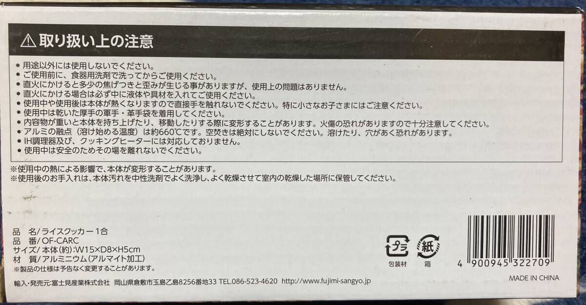 新品未開封 富士見産業 Field to Summit OF-CARC ライスクッカー1合の2個セットです。