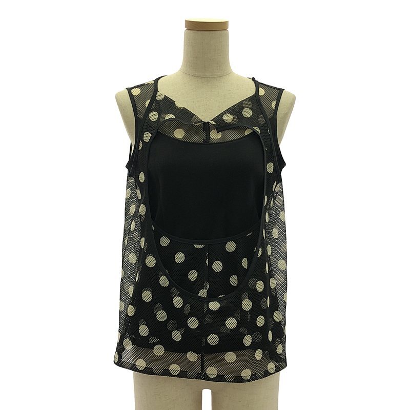 JUNYA WATANABE COMME des GARCONS / ジュンヤワタナベ | 2013SS | ポリエステル ドット 変形 メッシュ切替 ノースリーブ トップス | S | ブラック/ホワイト | レディース