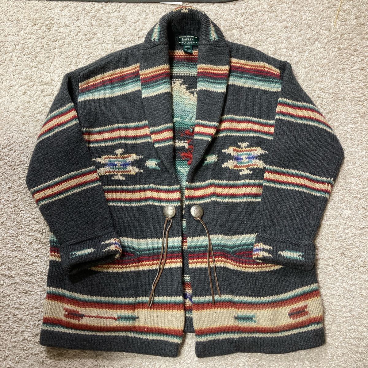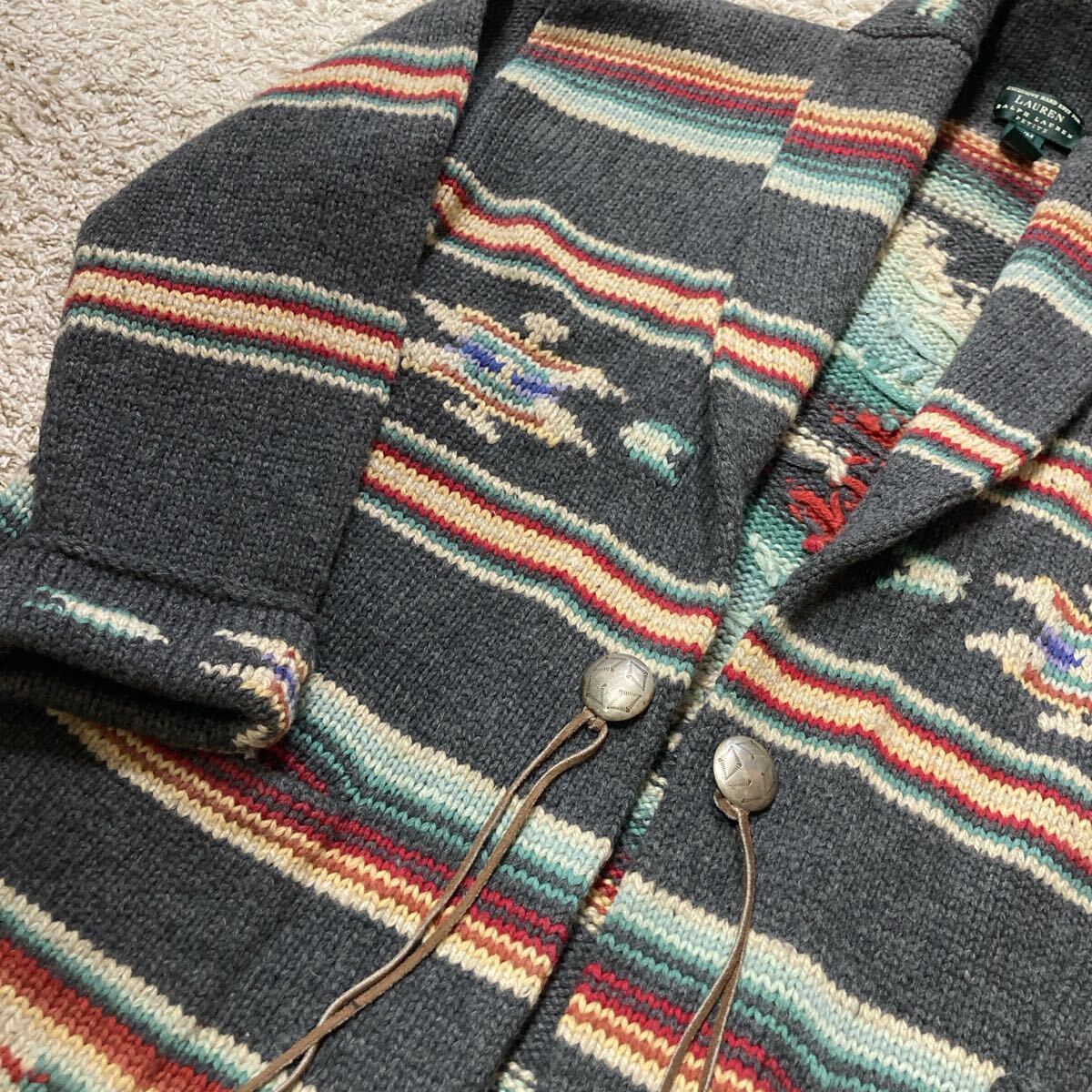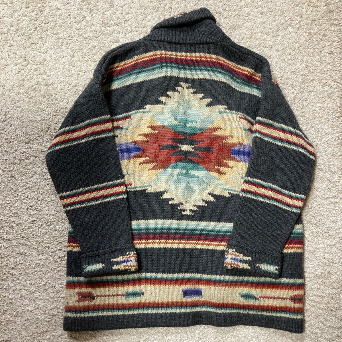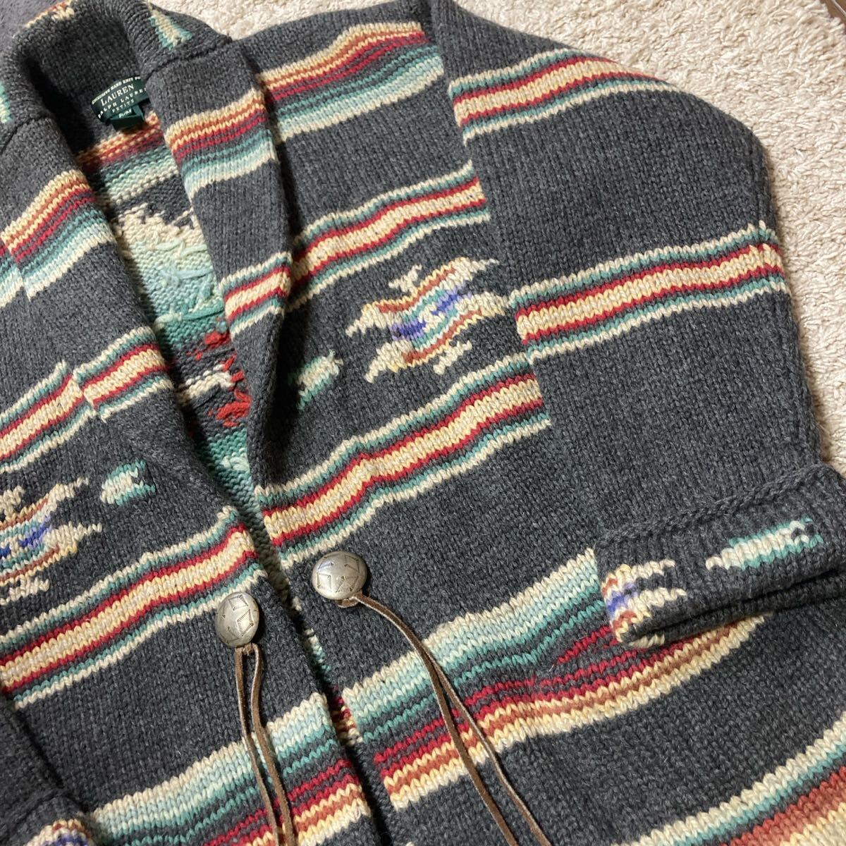 ラルフローレン ネイティブ ハンドニットカーディガンです。ハンドニットなので一本一本職人さんが手編みしています。ベルベルジン藤原さん着です