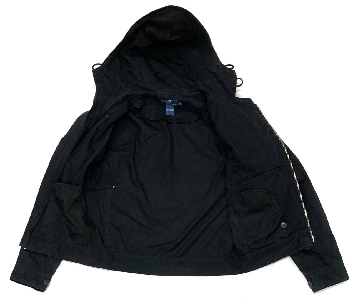 90s-00s 希少 Ralph Lauren ラルフローレン フード付き ライダース ジャケット 黒 S ミリタリー コットン