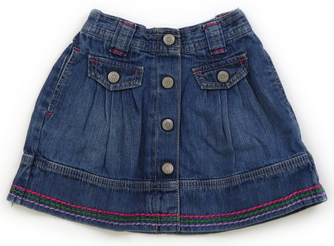 デニム素材。ウエストは半分ゴムです。実際のサイズ表記は、3。色褪せ・洗いざらし感があります。