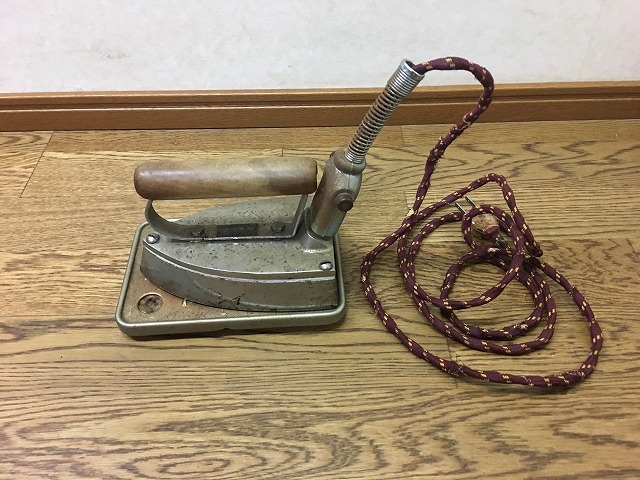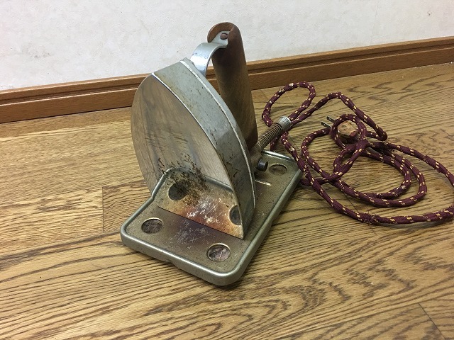 60s503k 昭和レトロ 小林アイロン アイロン 鉄製 インテリア アイロン置き台付き コード付き ジャンク (北海道・沖縄・離島は発送不可)