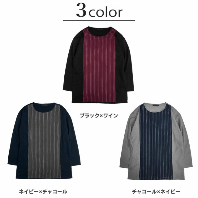 1円スタート ピンストライプ切替 長袖カットソーrv7525 メンズカットソー 長袖Tシャツ 新品 チャコールxネイビー M