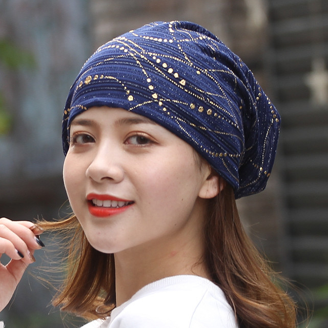 ターバンキャップ 帽子 レース素材 ケア帽子 薄手 デザインA 春夏秋 ネイビー 紺色 exia
