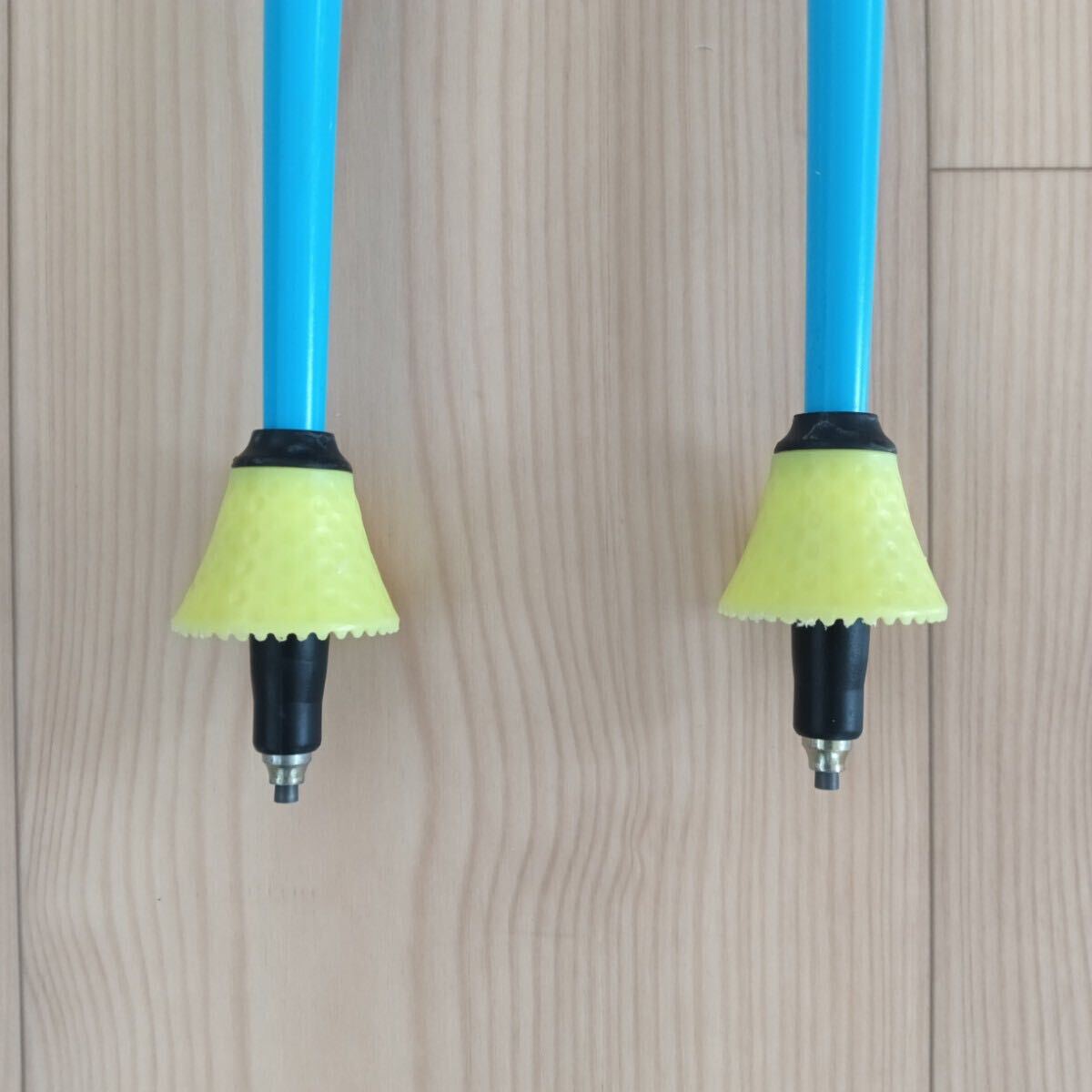 エルゴノミックデザインの青と黄のスキー用ストック。
