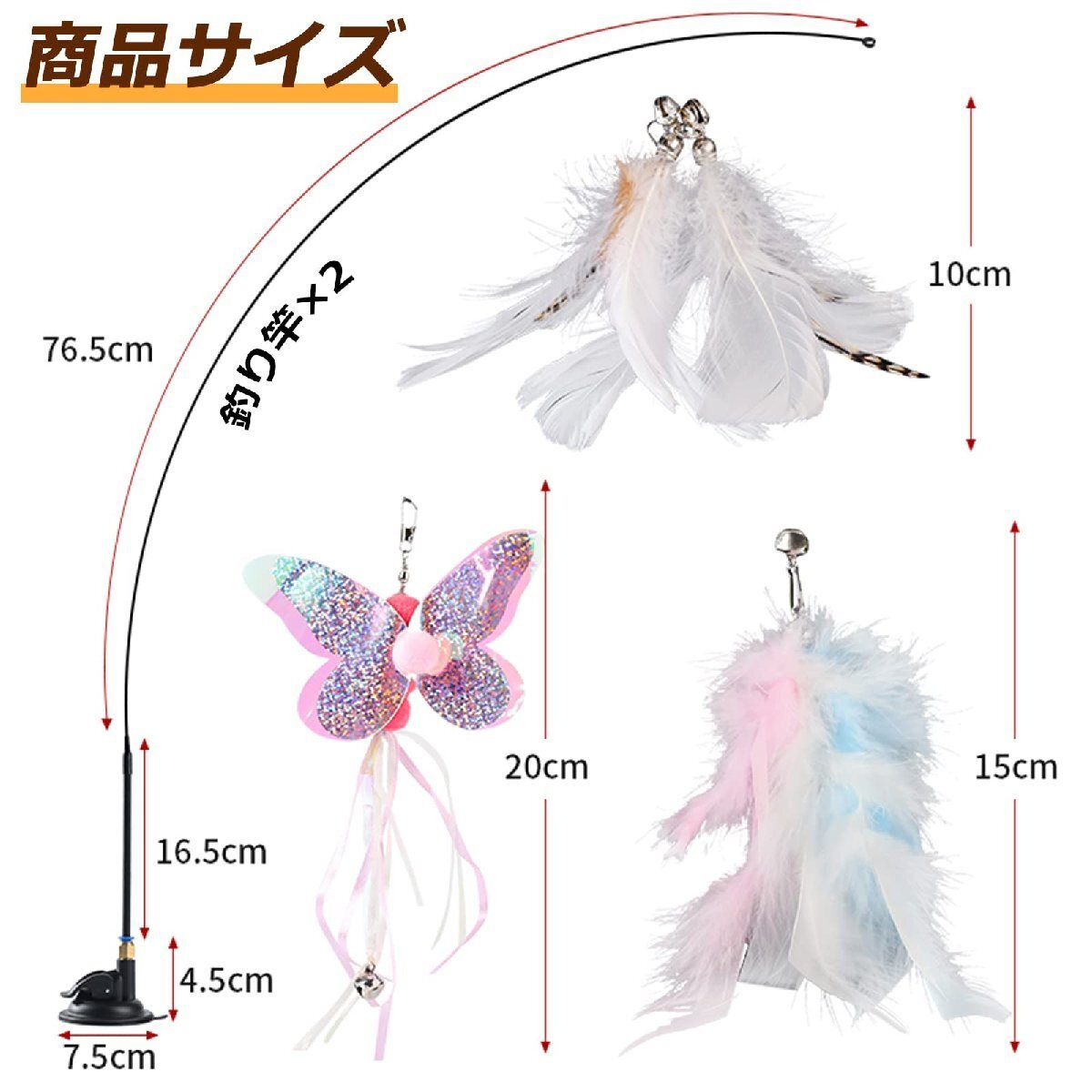 【セット商品】安全で天然素材で作られた羽毛。フィッシングロッド×2、パワフルサクションカップ×1、ナチュラルフェザー×1、プレミアムフェザー×1、バタフライ×1、合計6点。