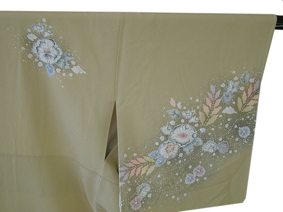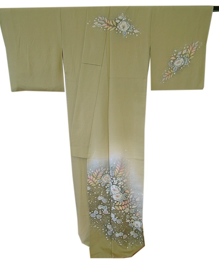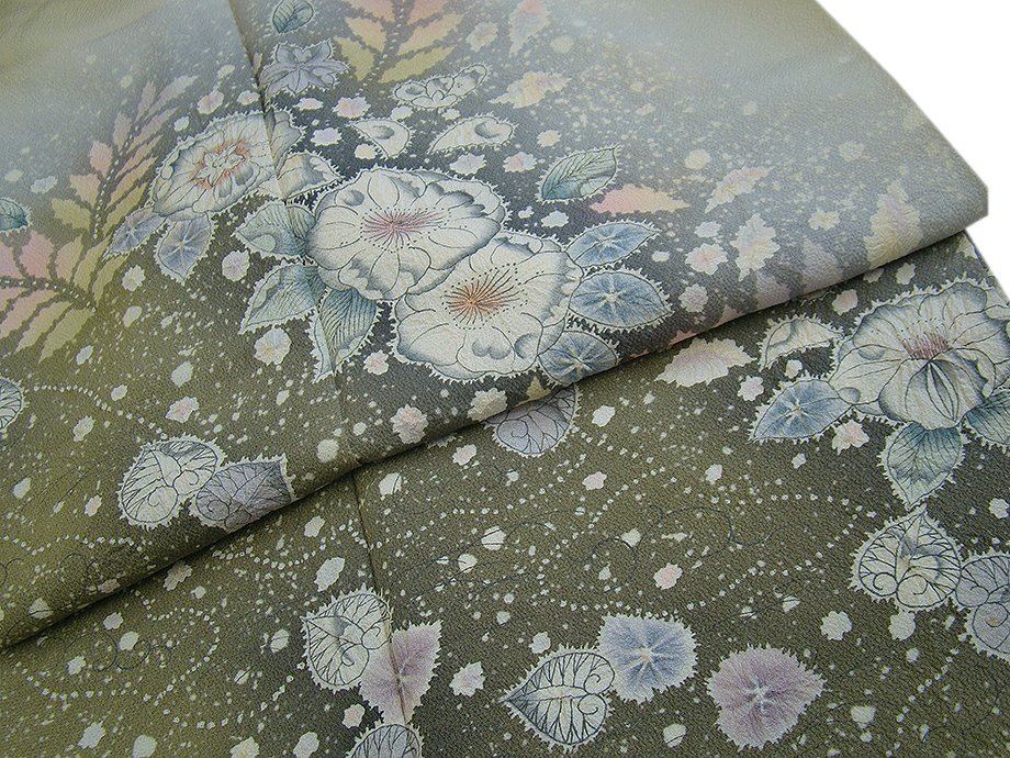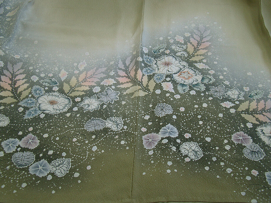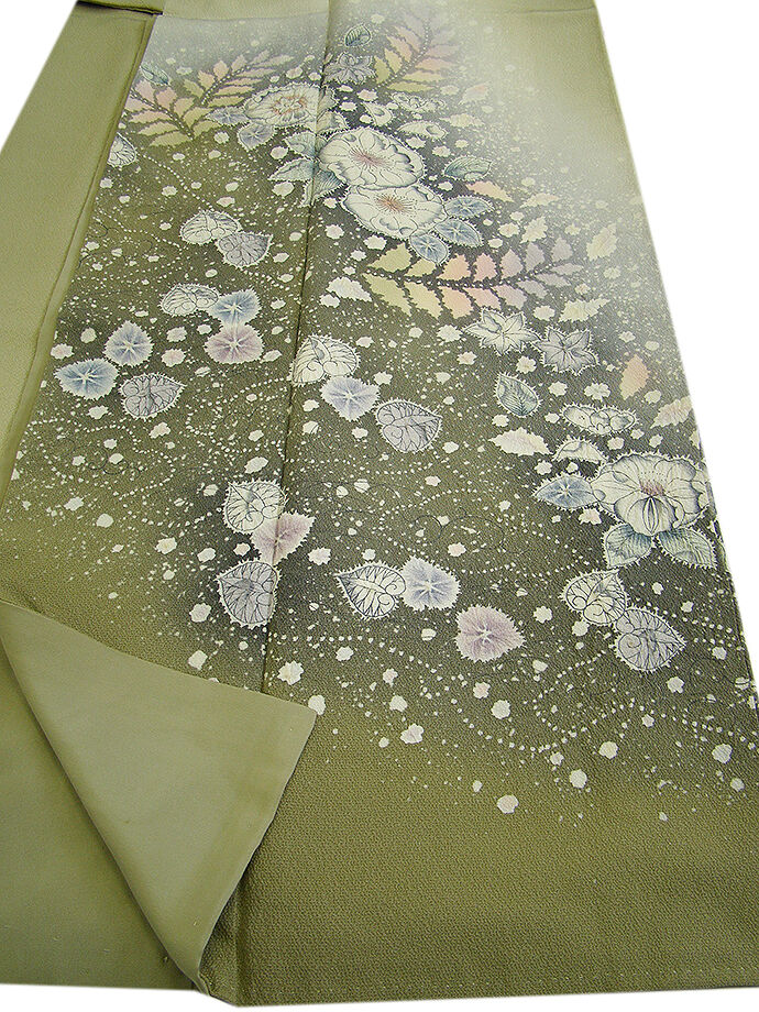 | 商品説明 | こちらのお品は「袷」でございますので、10月~5月までお召頂ければと思います。 しなやかなぽってりとした手触りの着心地良い重めのちりめん地の生地、 渋い青白橡色地に裾にかけて鶸茶色の三段ぼかし染に、絞って染めての辻が花の染柄、 八掛は共色(正絹)、幅広い年代の方にお召頂けます。 |