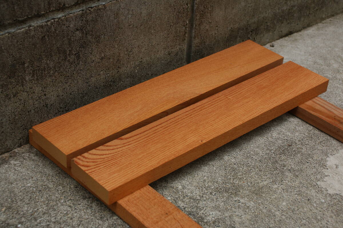 2枚セット 欅 けやき ケヤキ 無垢材 彫刻材 棚板 長さ35.5cm 幅6.3cm 厚み1.7cm